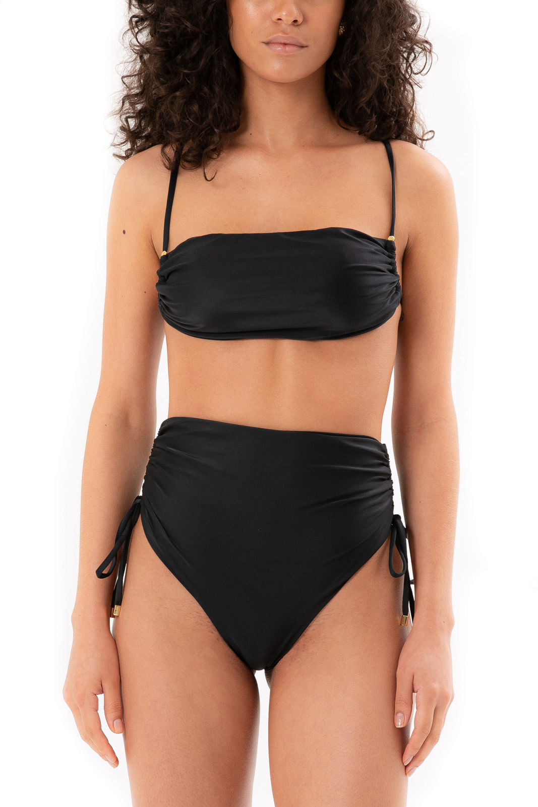 Preto calcinha de biquíni hot pants com regulagem M