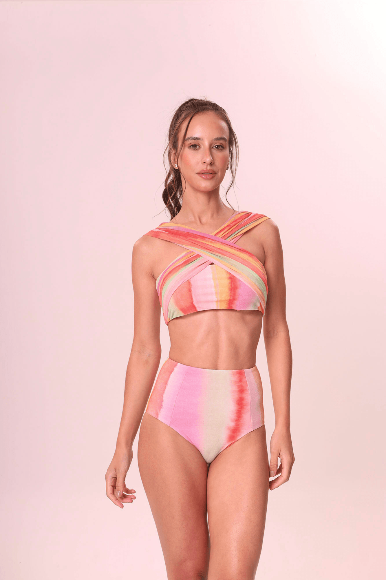 Listras aquarelas calcinha de biquíni hot pants M