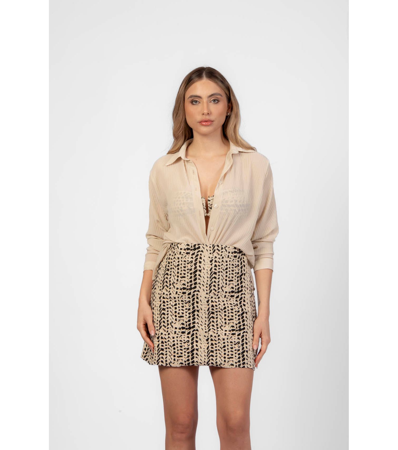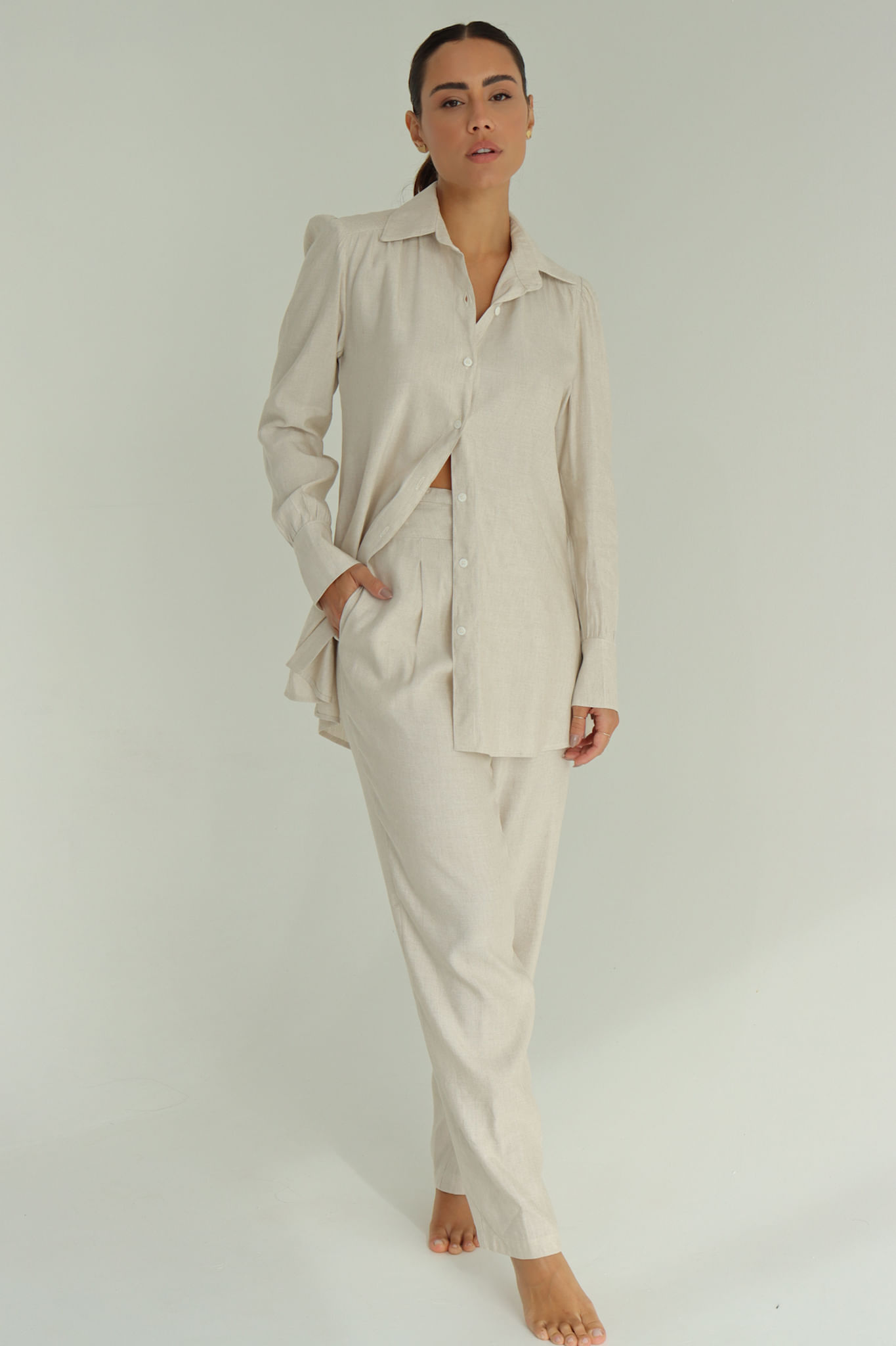 Natural camisa alfaiataria com manga franzida P