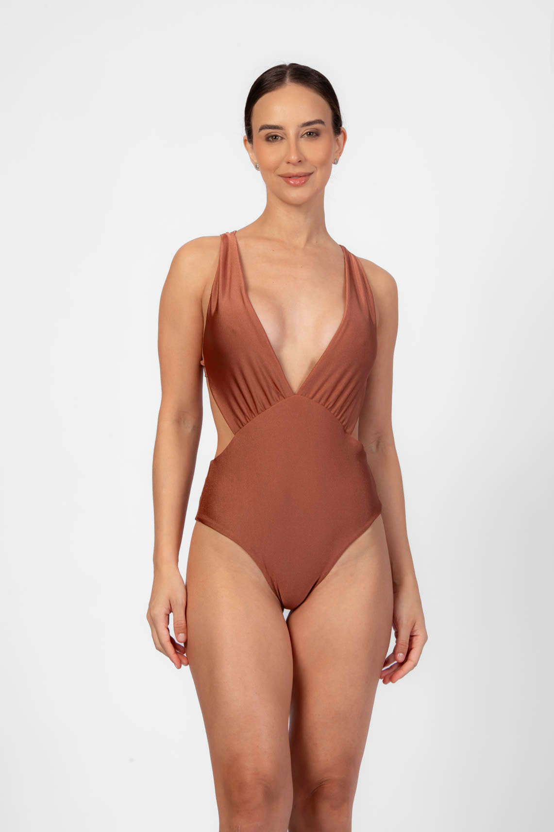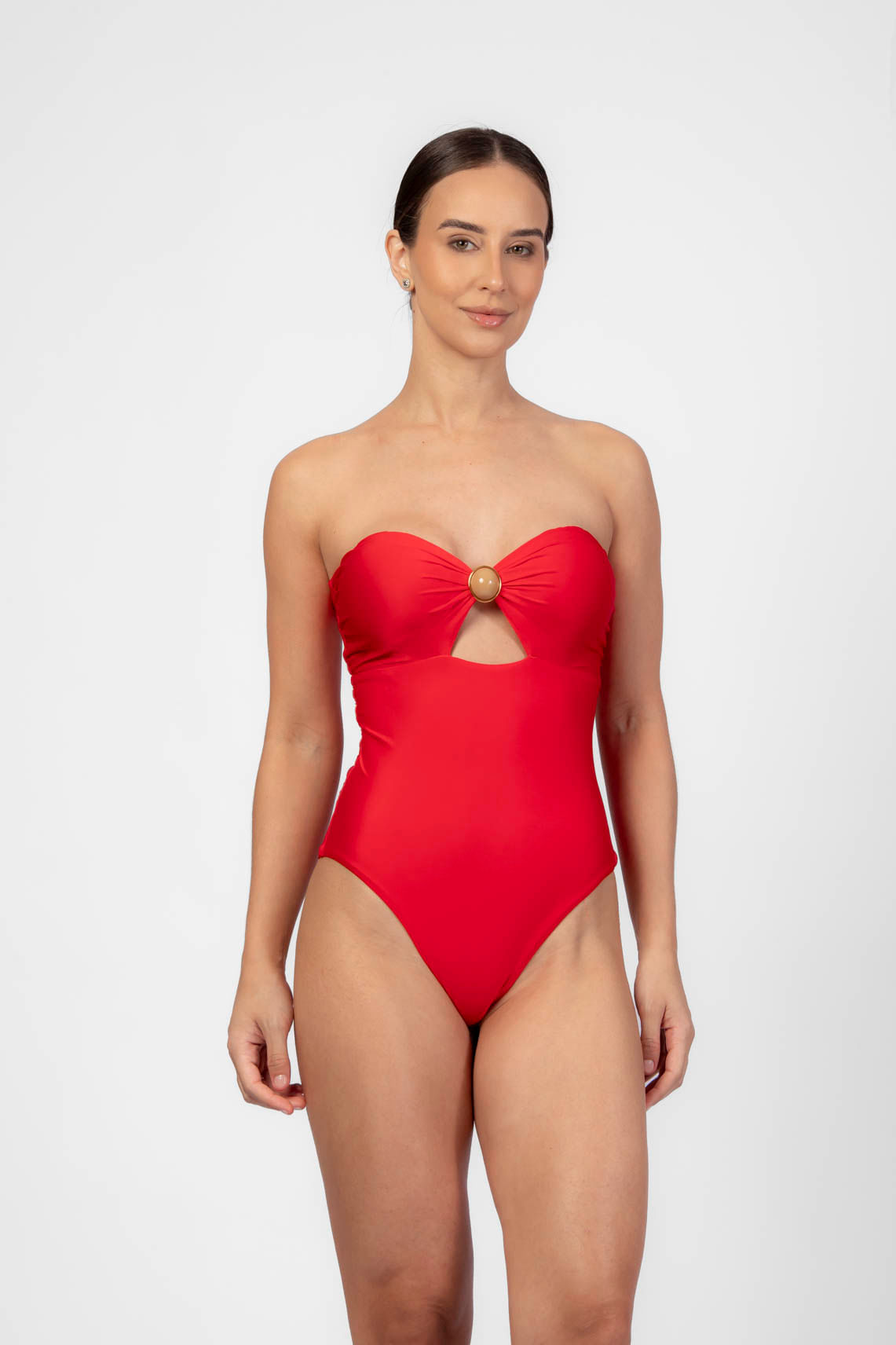 Vermelho reef maiô tomara que caia com recorte e metal areia P