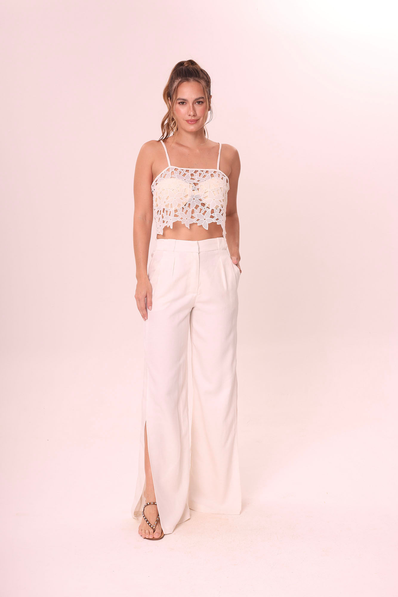Off white top cropped renda M