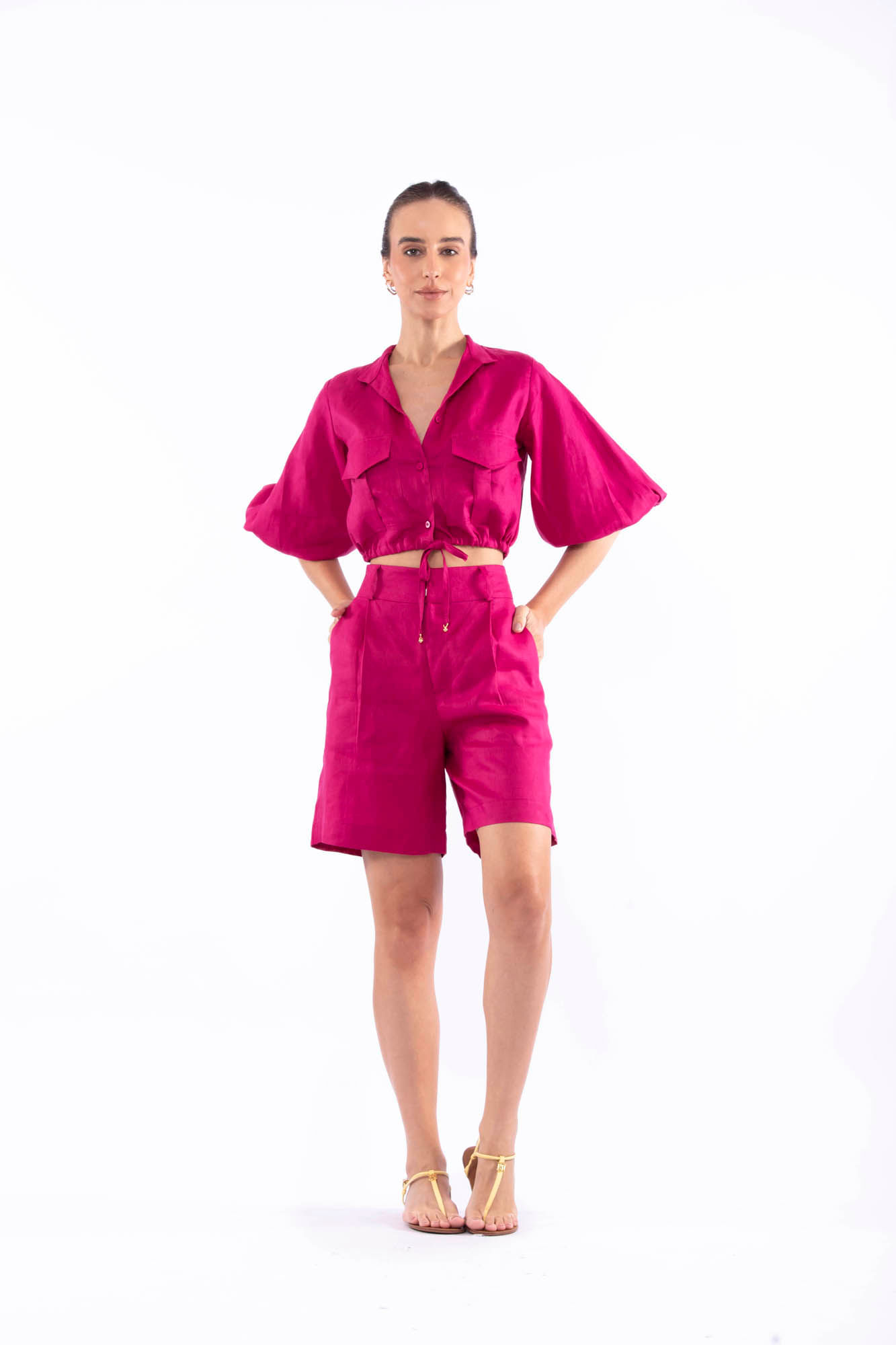 Cereja cropped camisa com manga bufante e bolsos M