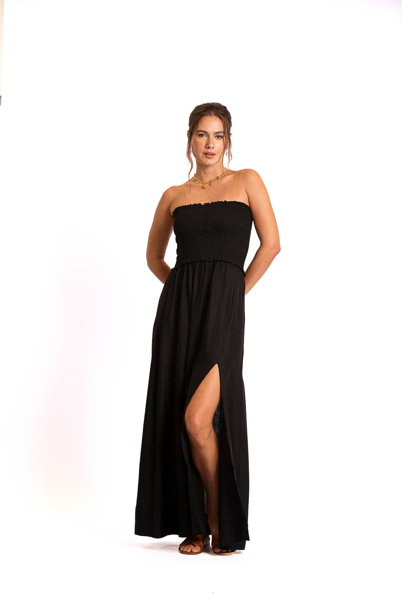 Preto vestido tomara que caia longo com lastex M