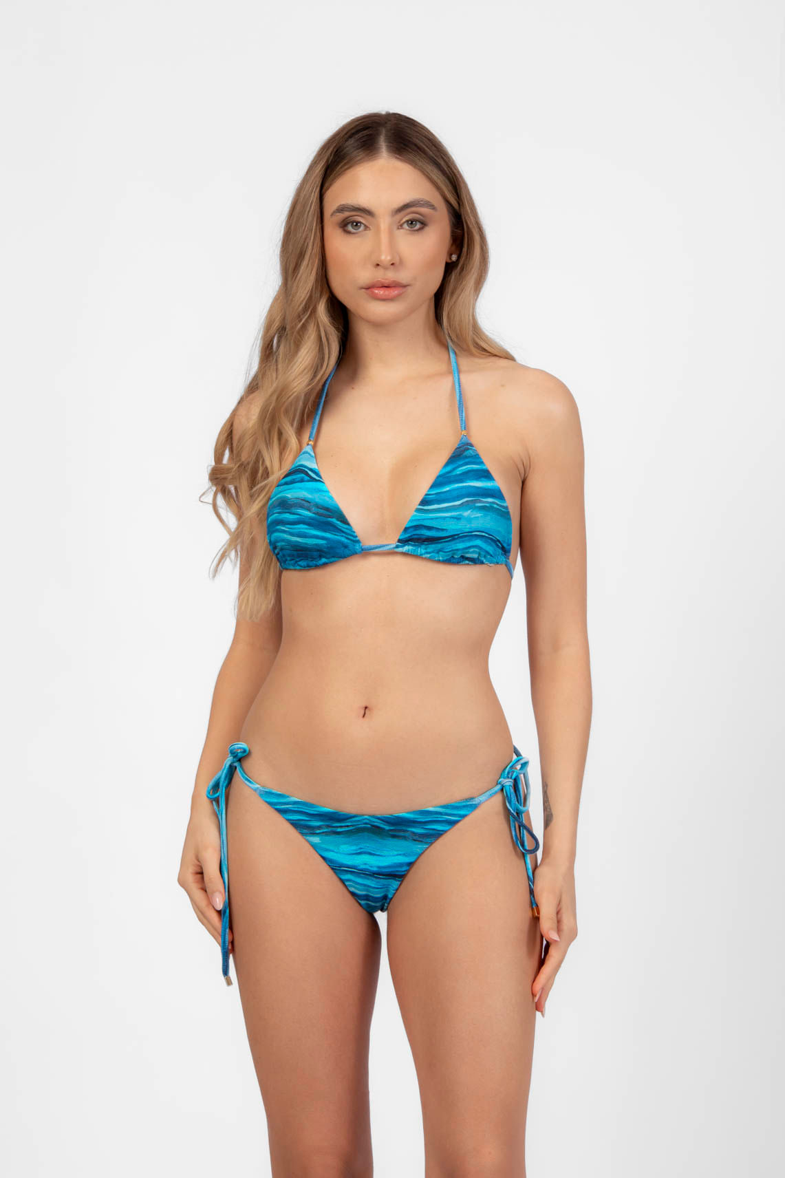Azul Brisa Top Cortininha Duas Alças Cordões P