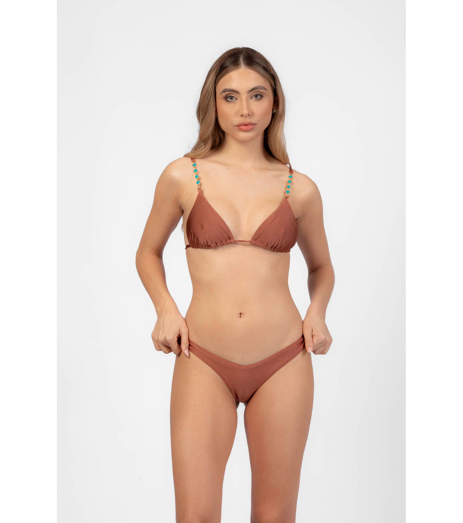 Pérola top de biquíni cortininha corrente com detalhes fundo do mar P
