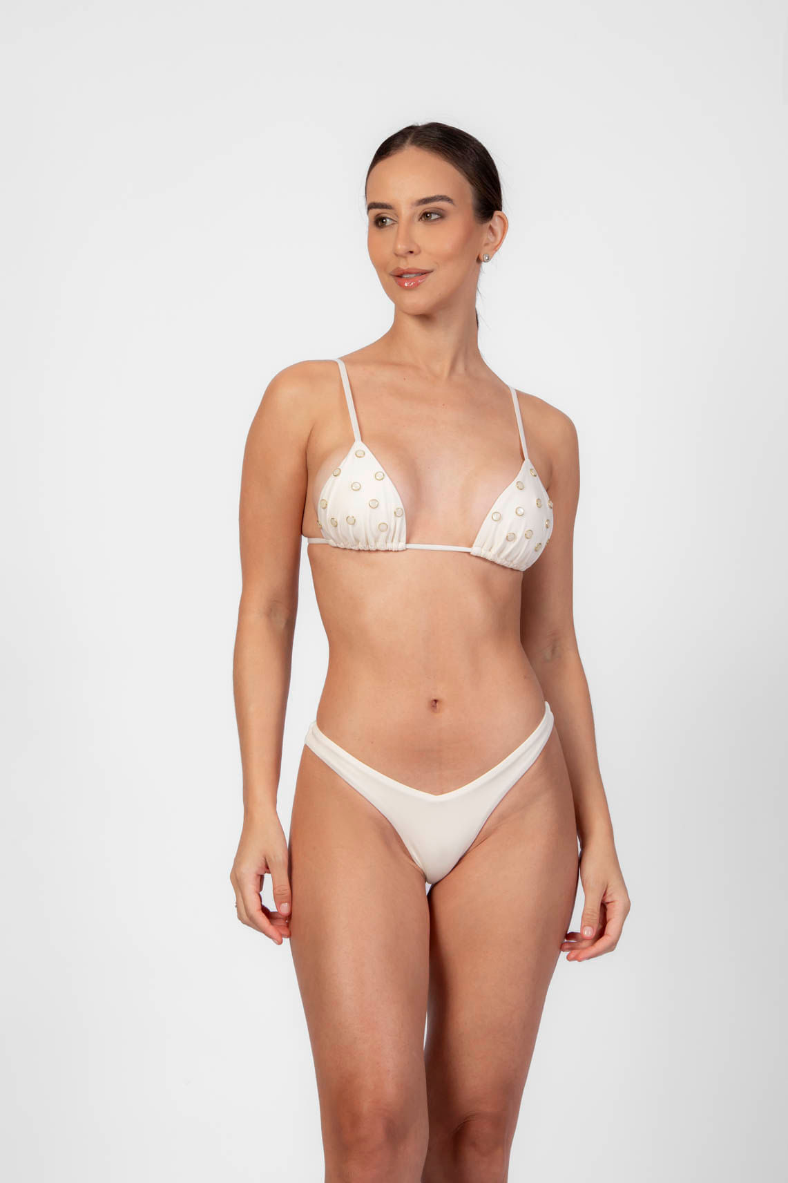 Pérola top de biquíni cortininha duplo com pérolas P