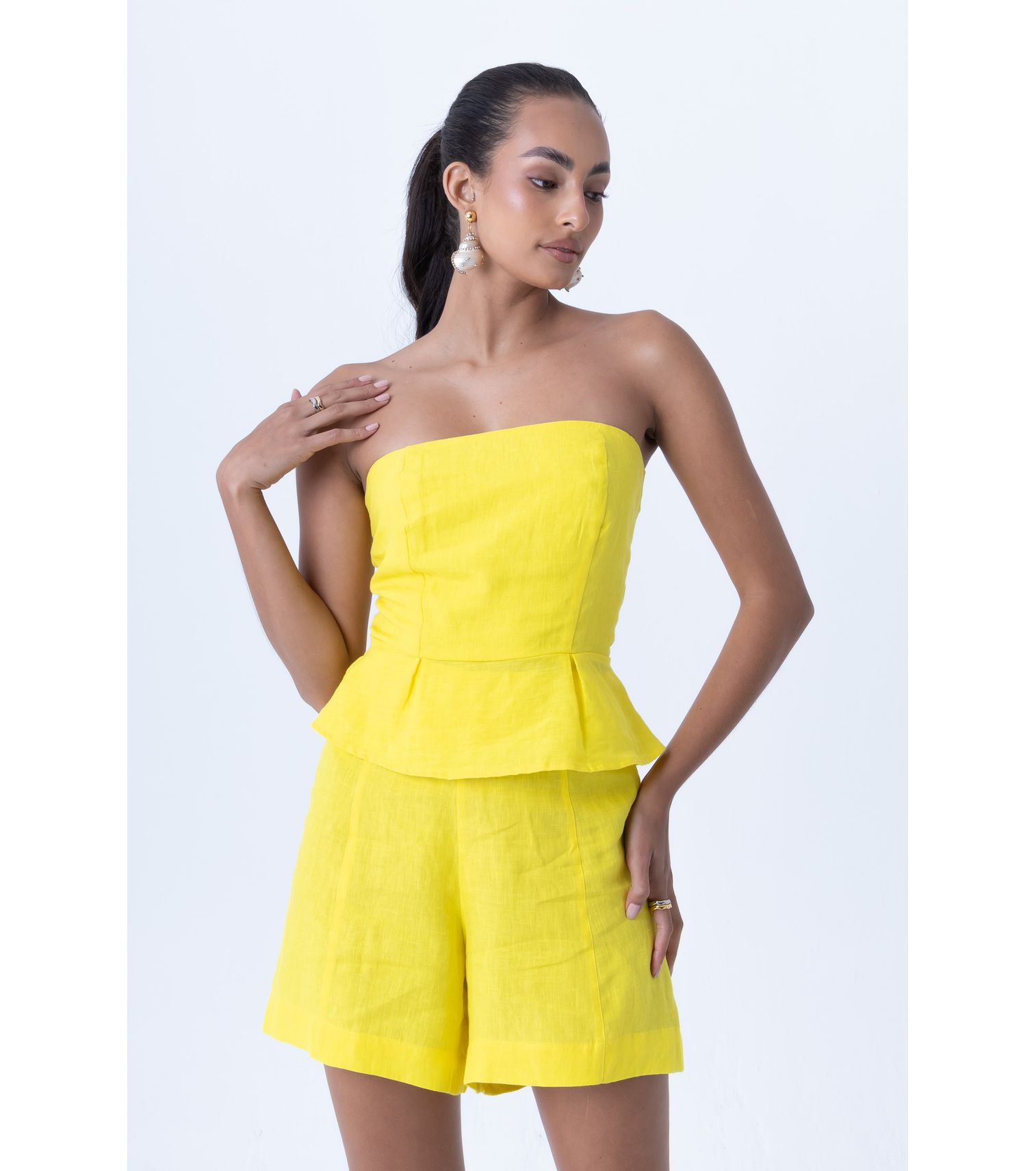 Verde folhagem cropped alças torcidas M
