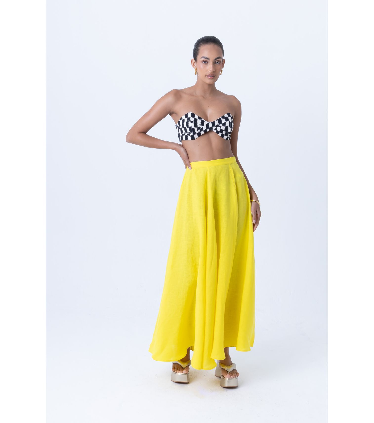 Cannes branco saia longa com bolsos e zíper M