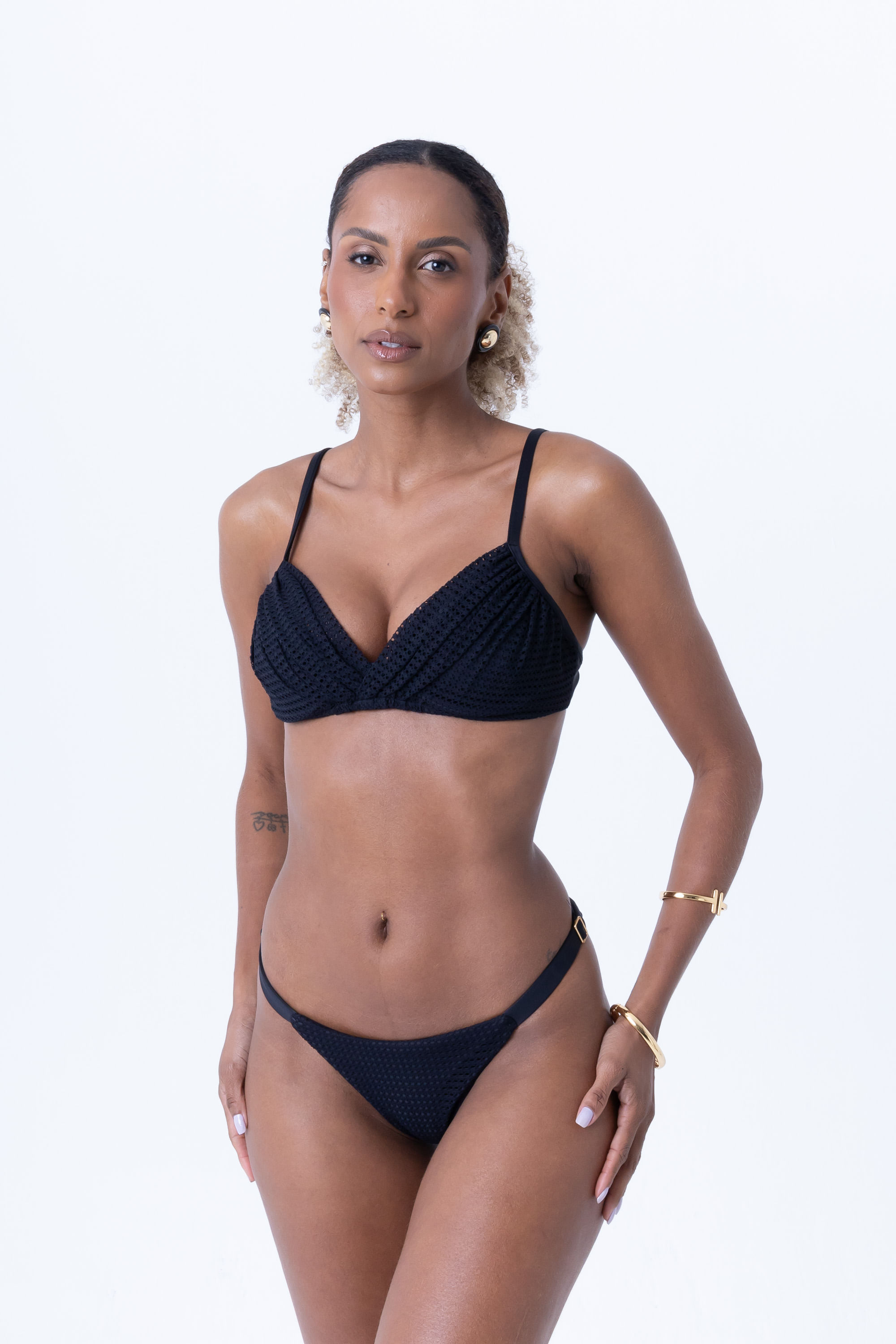 Preto top de biquíni triângulo com argolas M