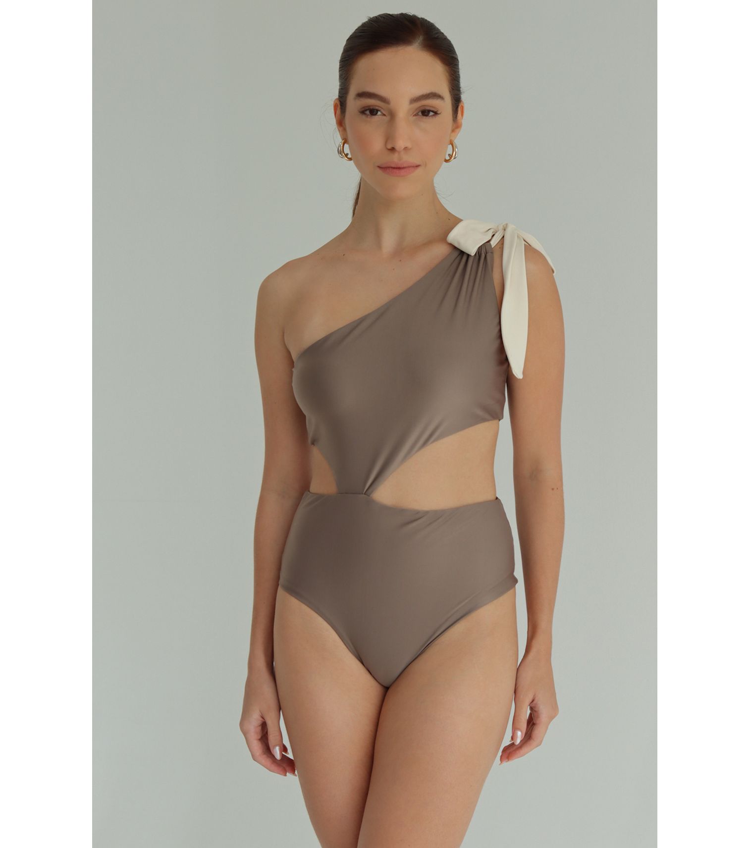 Cannes amarelo maiô um ombro só com argolas P