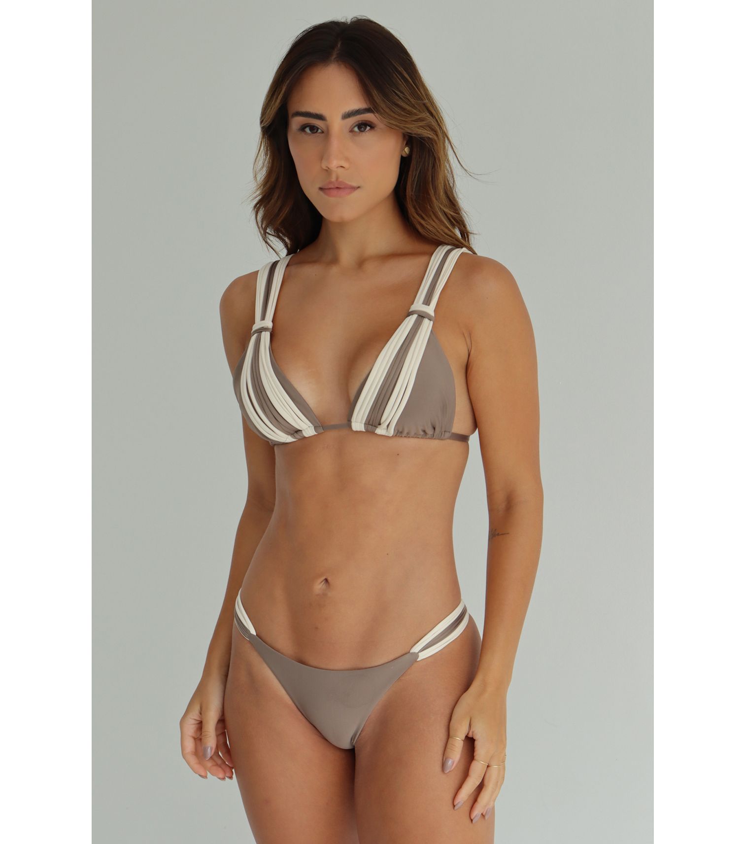 Castanho top de biquíni cortinão com alças tiras bicolor