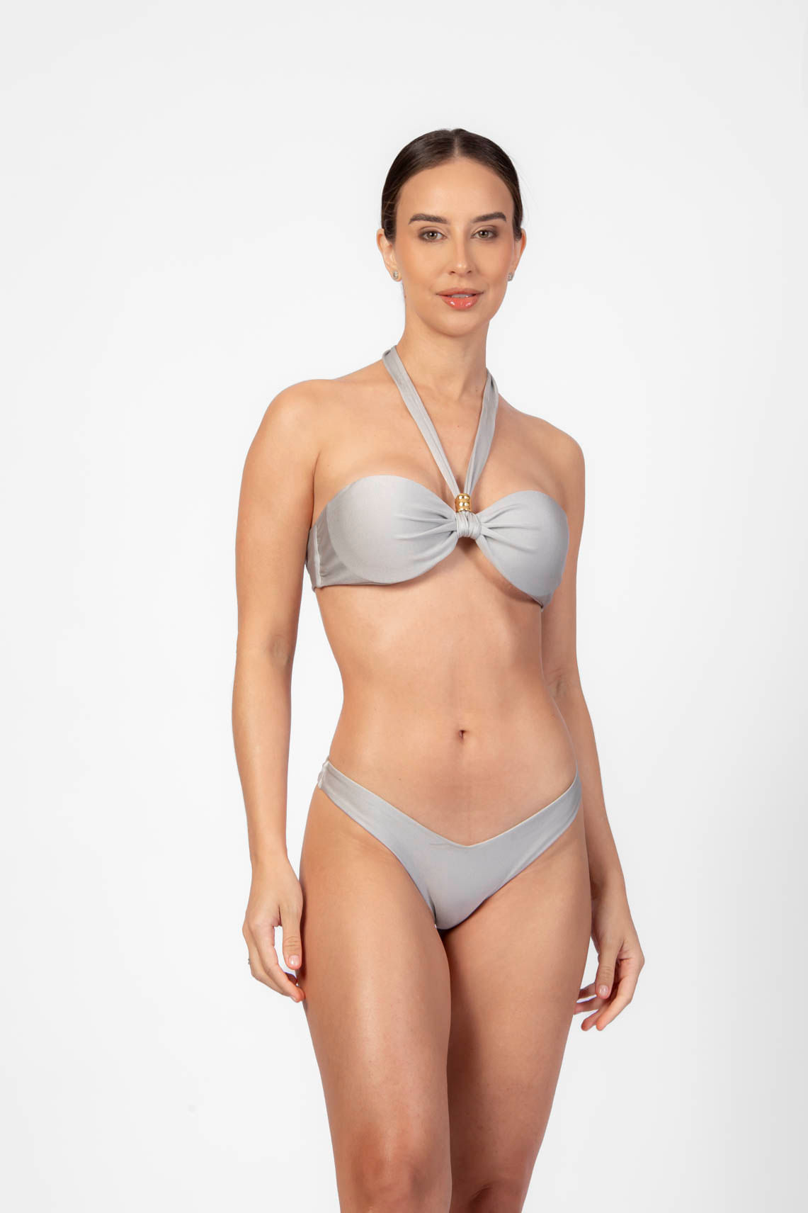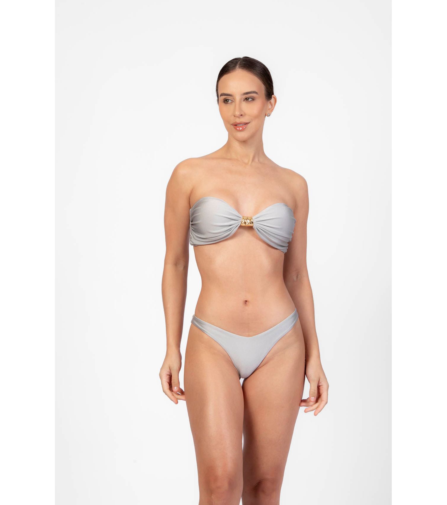 Top de biquíni tomara que caia com metal,cor cromo, bojo fixo, alças removíveis e amarração nas costas tecido: trilobal 85% poliamida 15% elastano forro: 88,6% poliamida 11,4 elastano