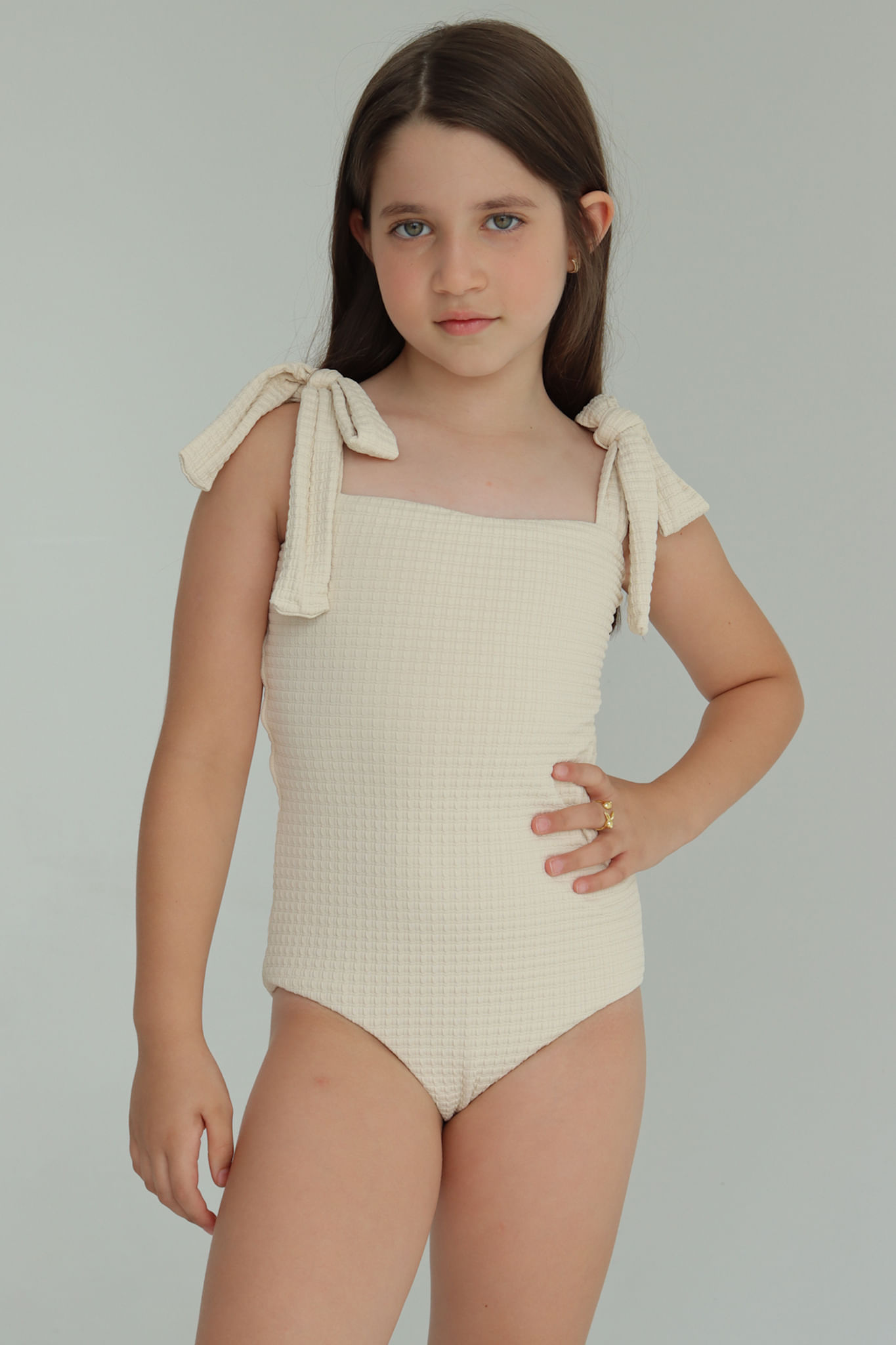 Tweed off white maiô infantil reto 2