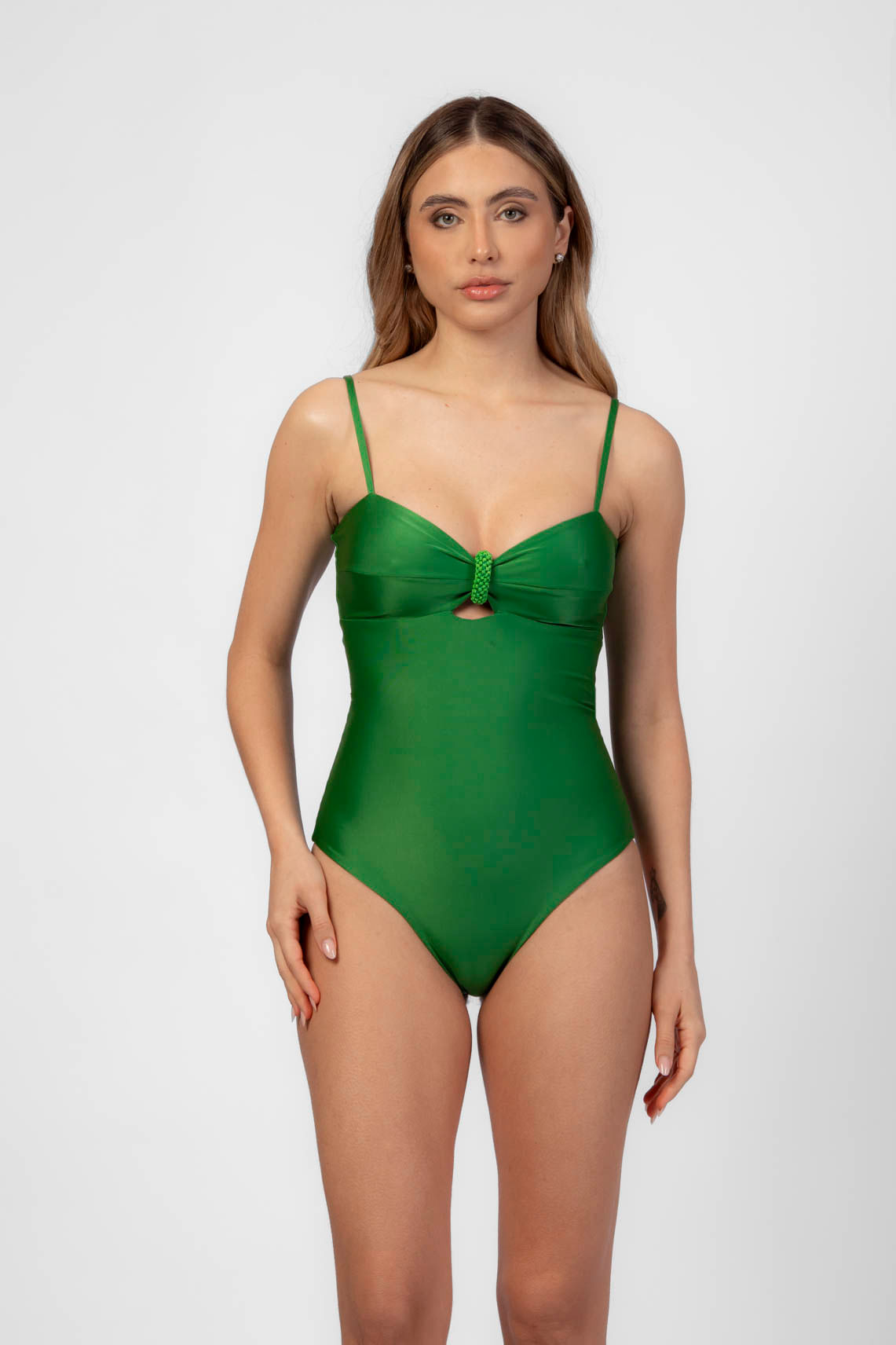 Verde alga maiô recorte com elos bordados P