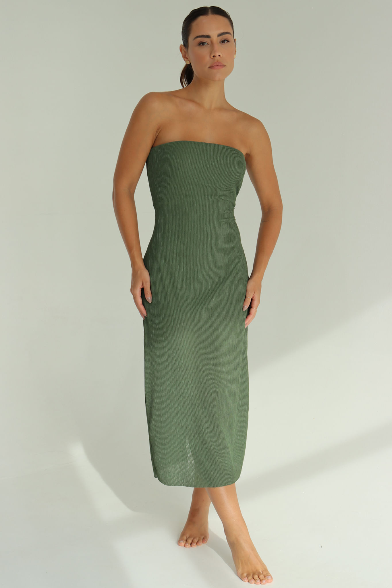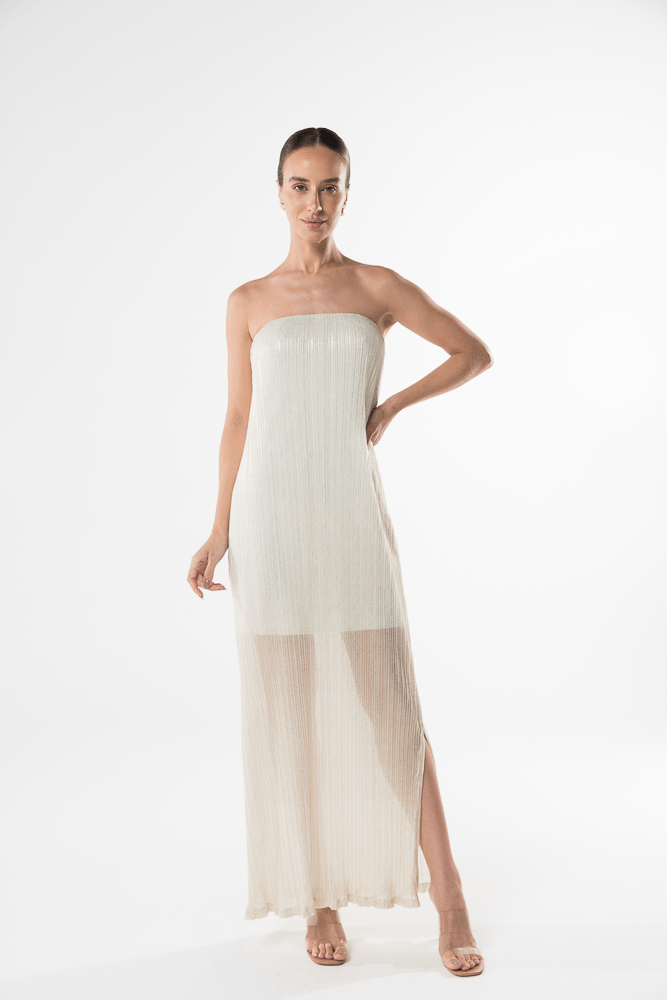 Pérola vestido tomara que caia plissado P