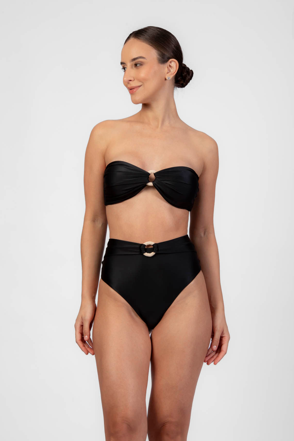 Preto calça hot pants com elo bordado pérola P