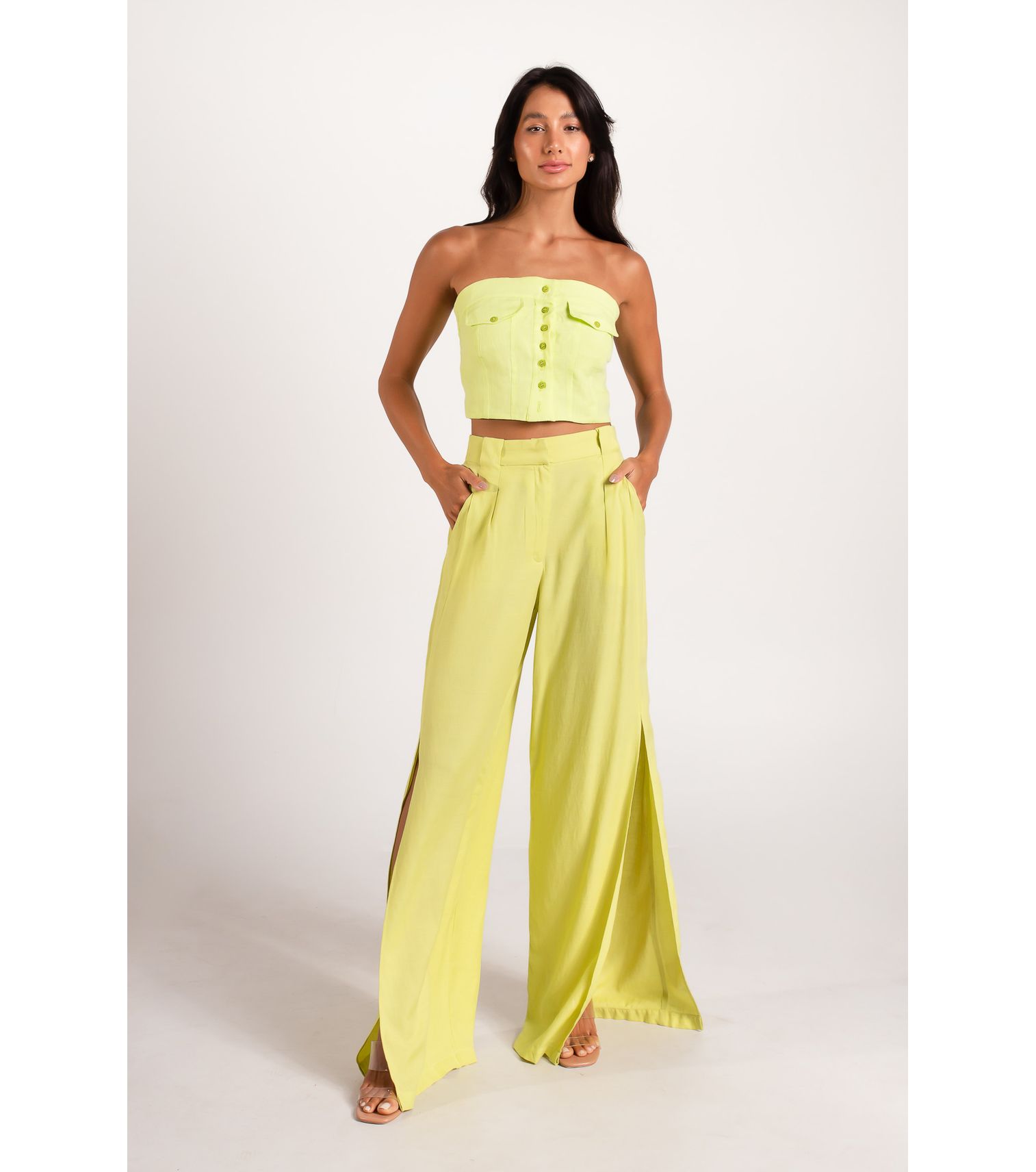 Verde folhagem cropped alças torcidas M