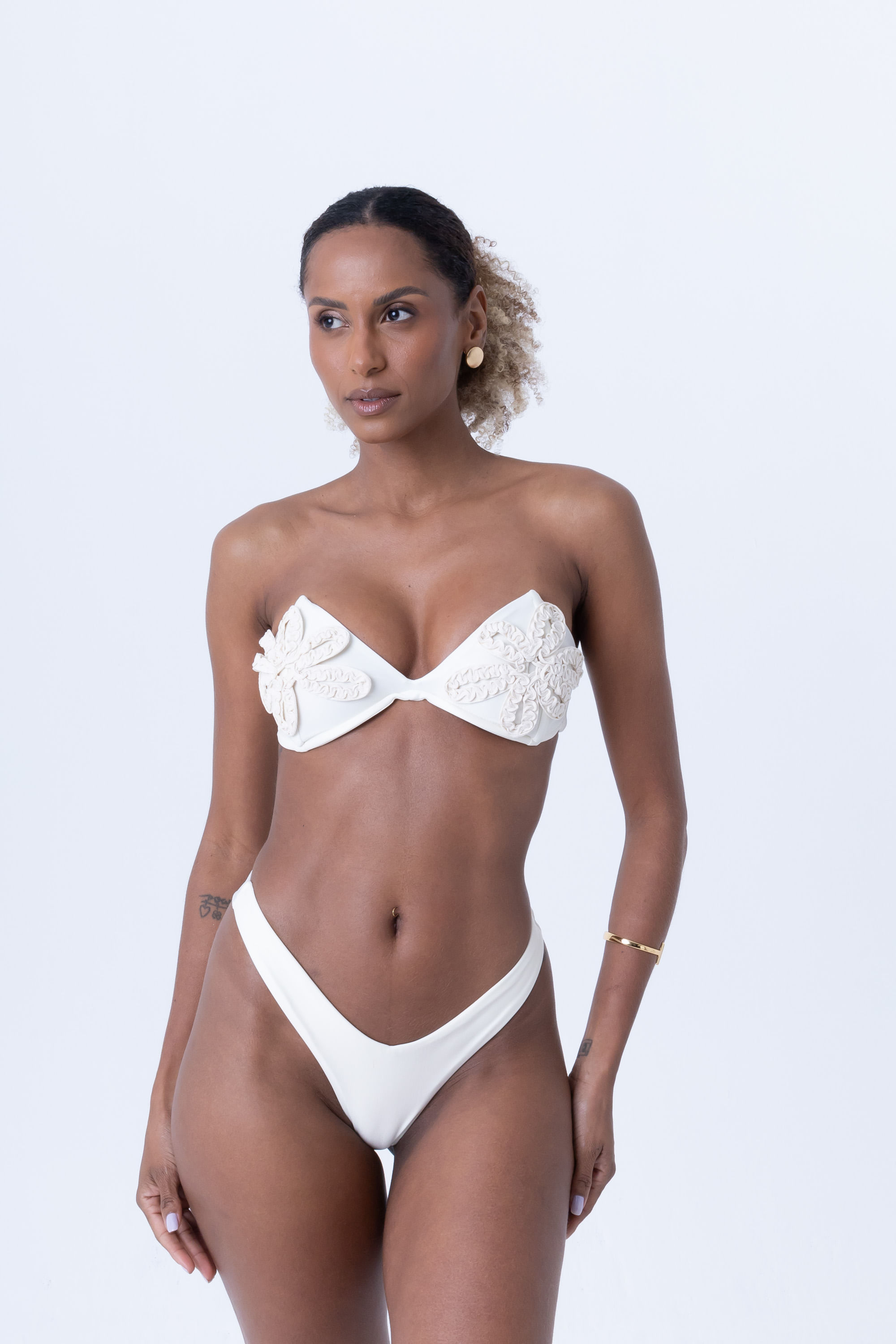 Pérola top de biquíni tomara que caia com aplicação flor P