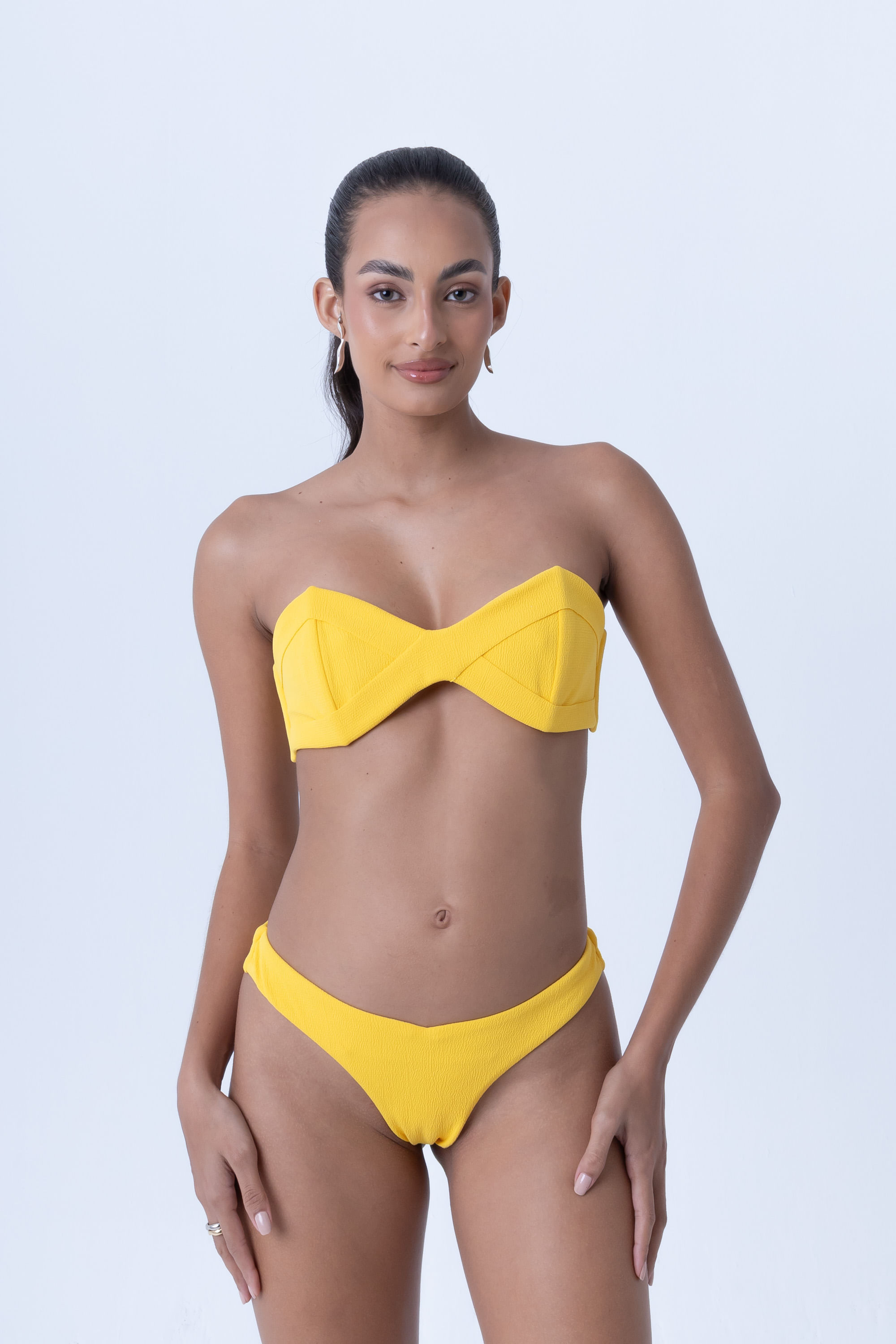 Cannes amarelo top tomara que caia com recortes P