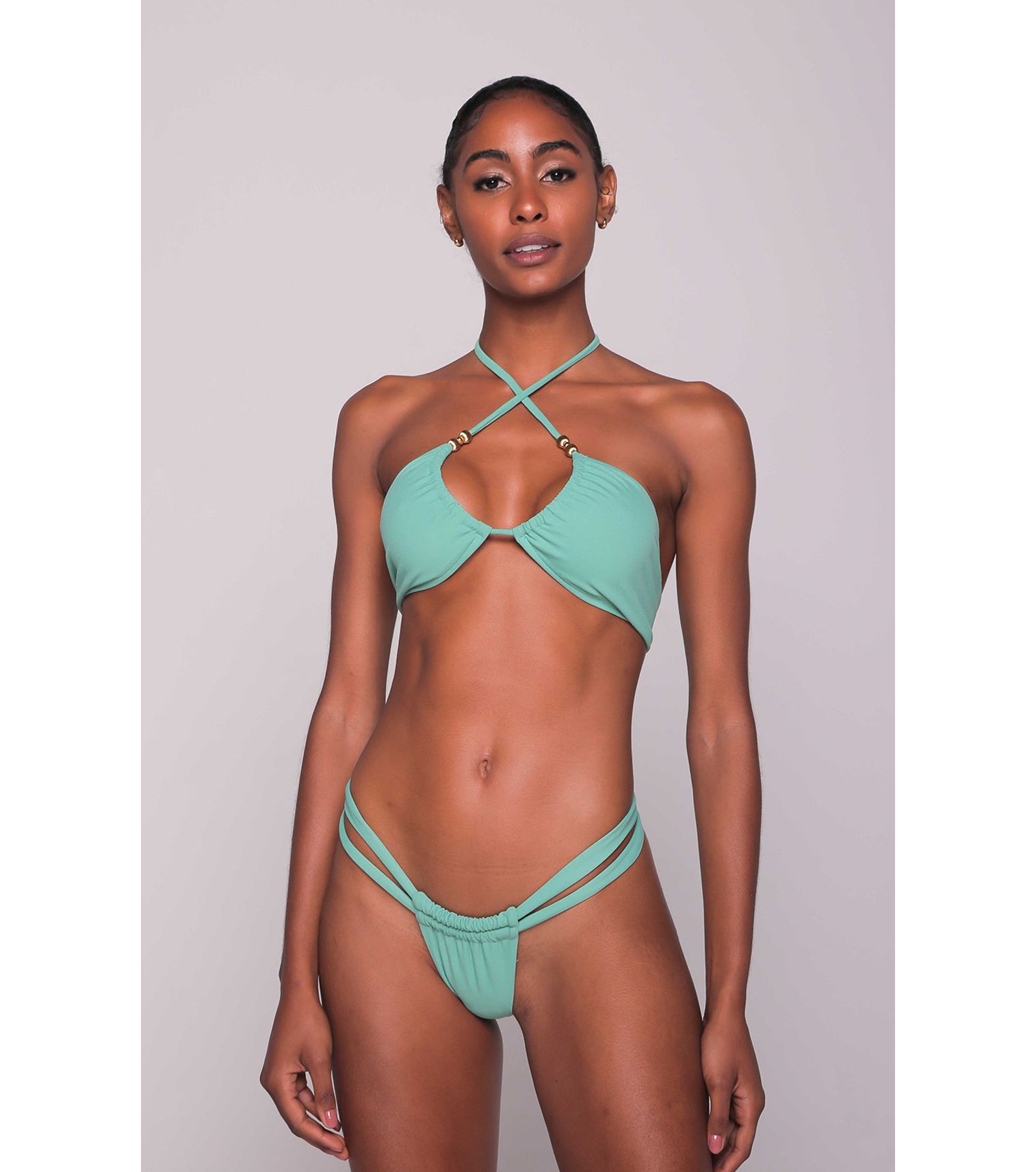 Calcinha de biquíni com tiras duplas, cor jade crepon.