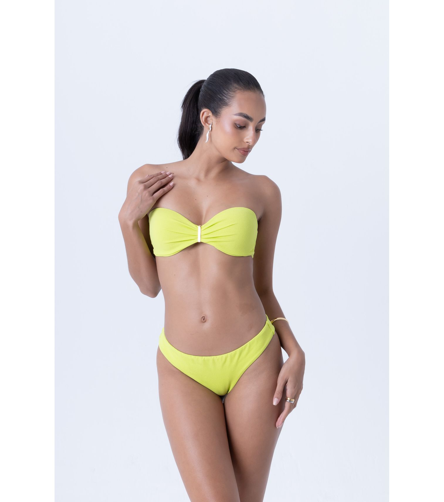 Top tomara que caia , cor lemon, com bojo fixo, alças removiveis e amarração nas costas tecido 95% poliamida, 5% elastano forro 88,6% poliamida, 11,4% elastano com proteção uv50+