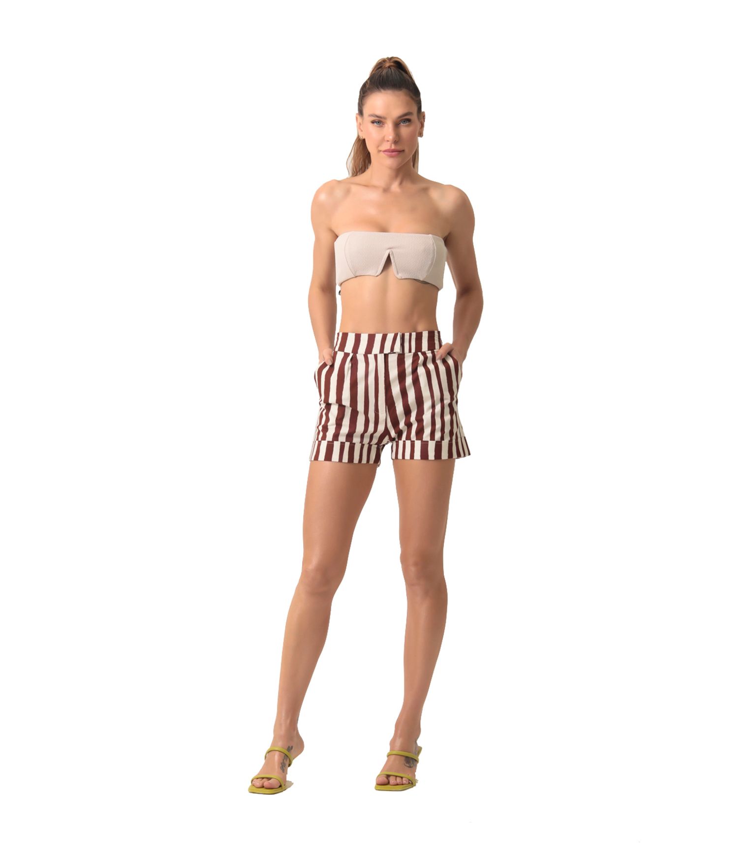 Listrado amarelo fluor short alfaiataria M