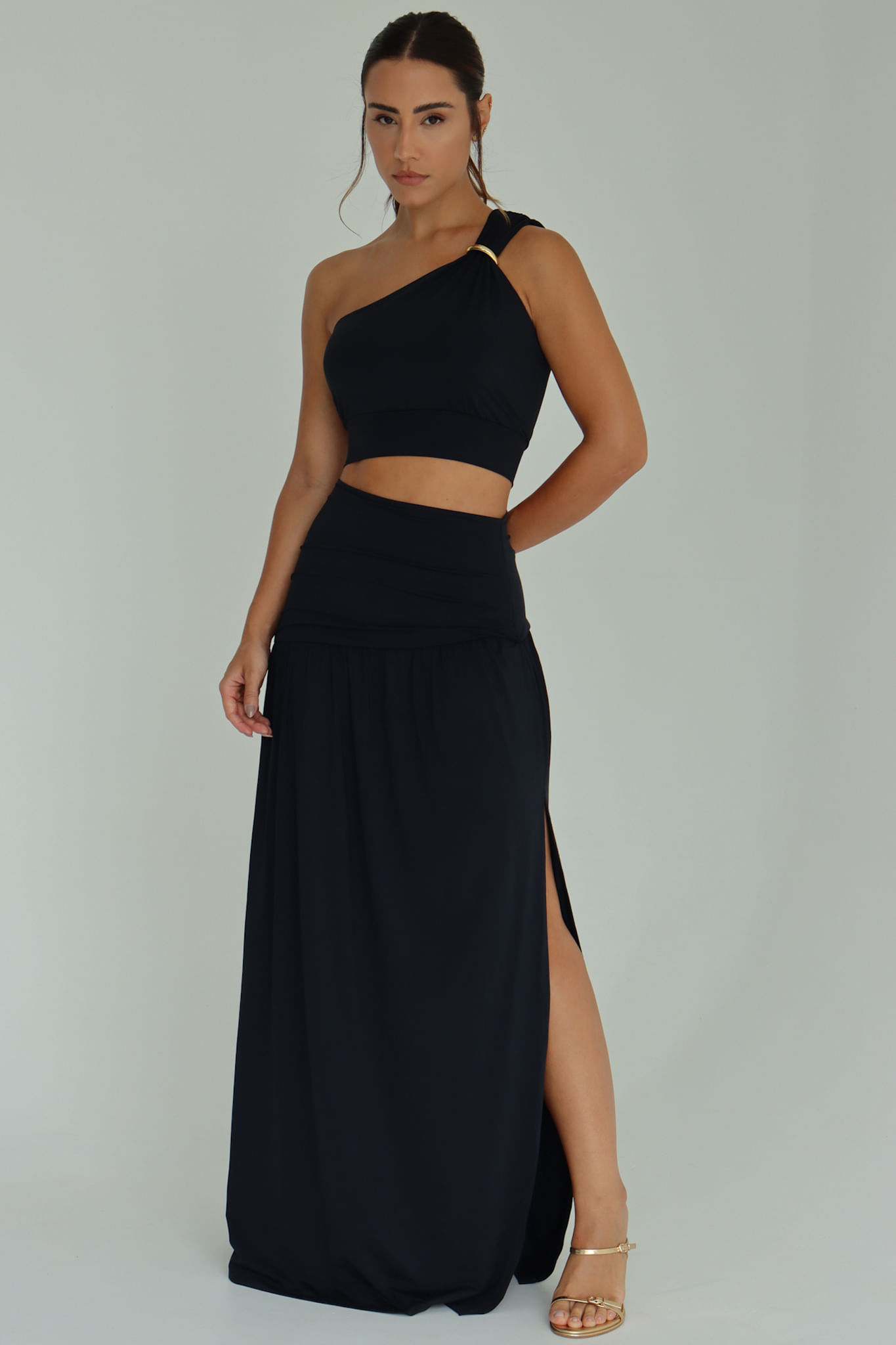 Preto saia longa com transpasse P