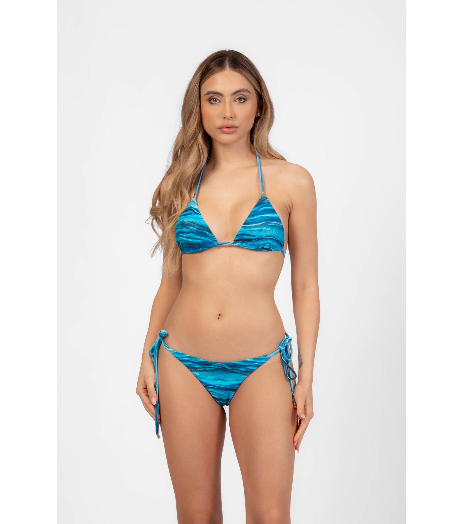 Calcinha de biquíni lacinho com recorte no bumbum e ponteiras, estampa mar tecido: cannes (90% poliamida; 10% elastano) forro: (88,6% poliamida; 11,4% elastano) forro com proteção uv50+.
