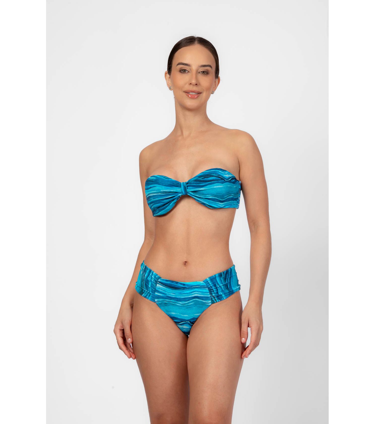 Top de biquíni tomara que caia estruturado, com bojo fixo, alças removíveis e amarração nas costas, estampa mar tecido: cannes (90% poliamida; 10% elastano) forro: (88,6% poliamida; 11,4% elastano) forro com proteção uv50+.