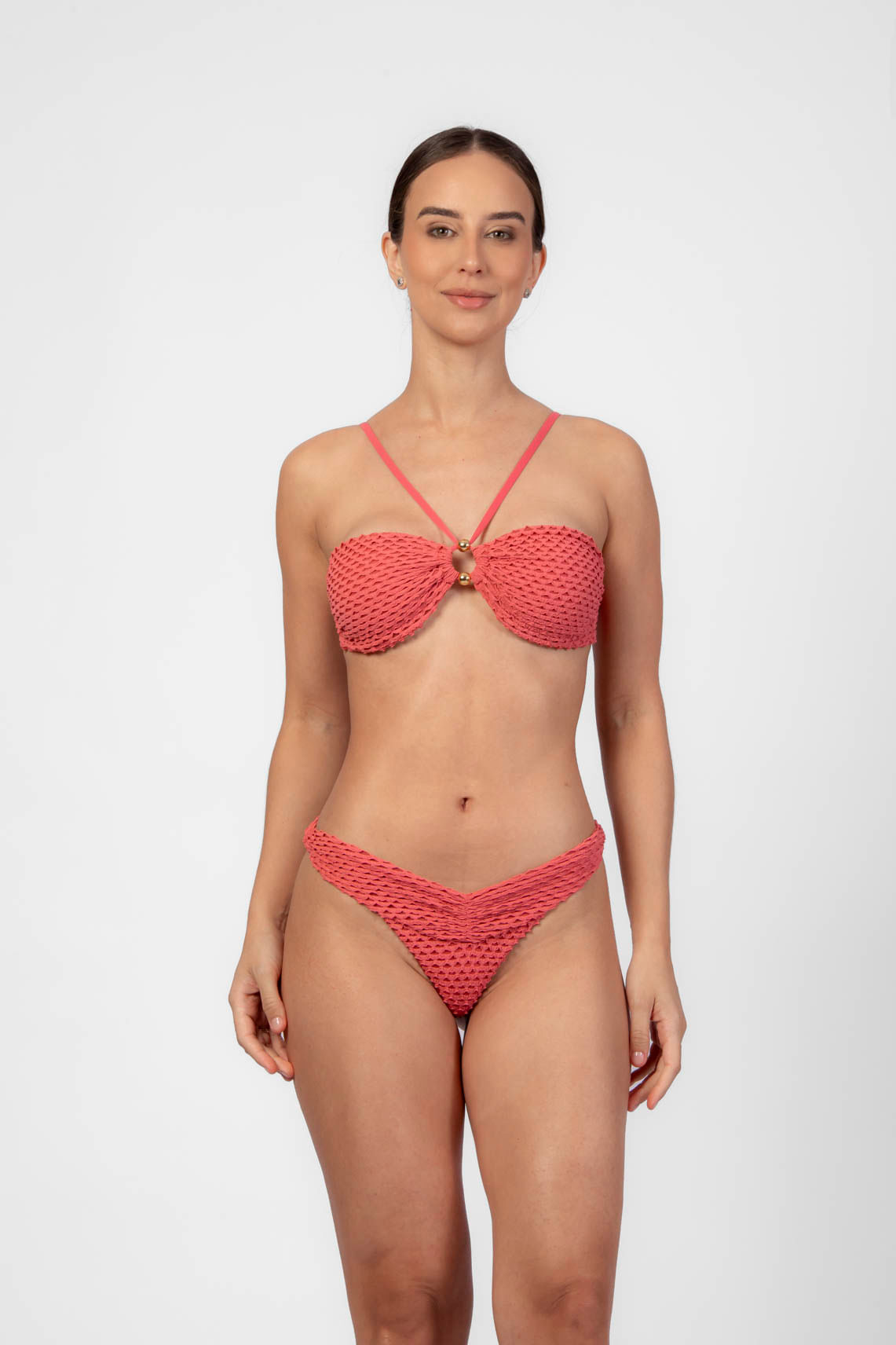 Pink top de biquíni quadrado com alça cruzada e metal P