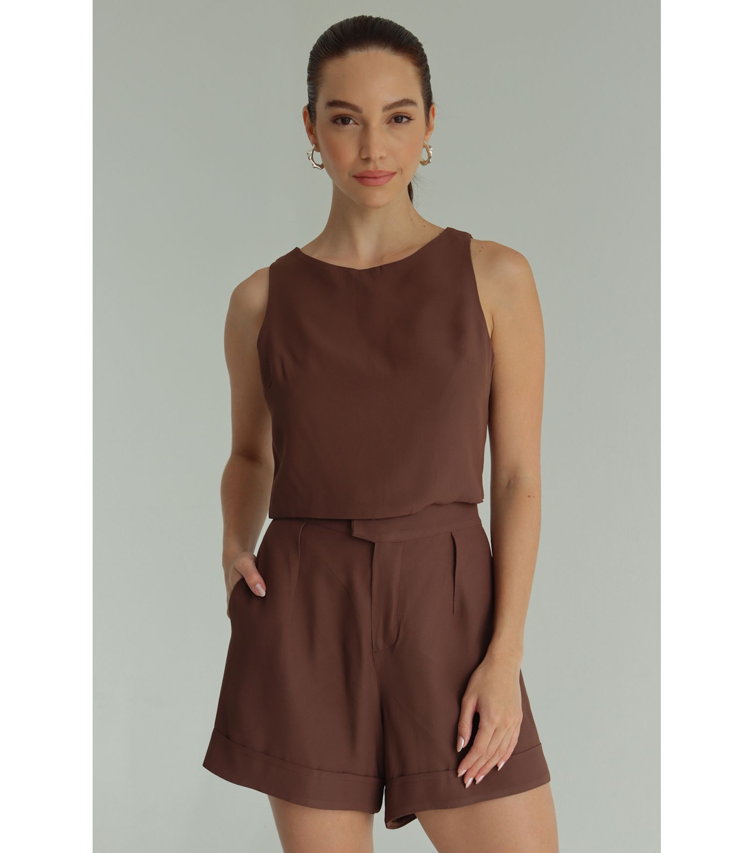 Short alfaiataria cor marrom cacau com bolsos tecido crepe patou-100% viscose medidas da nossa modelo: tamanho- p busto - 86 cm cintura - 62 cm quadril - 95 cm altura - 1.70 c