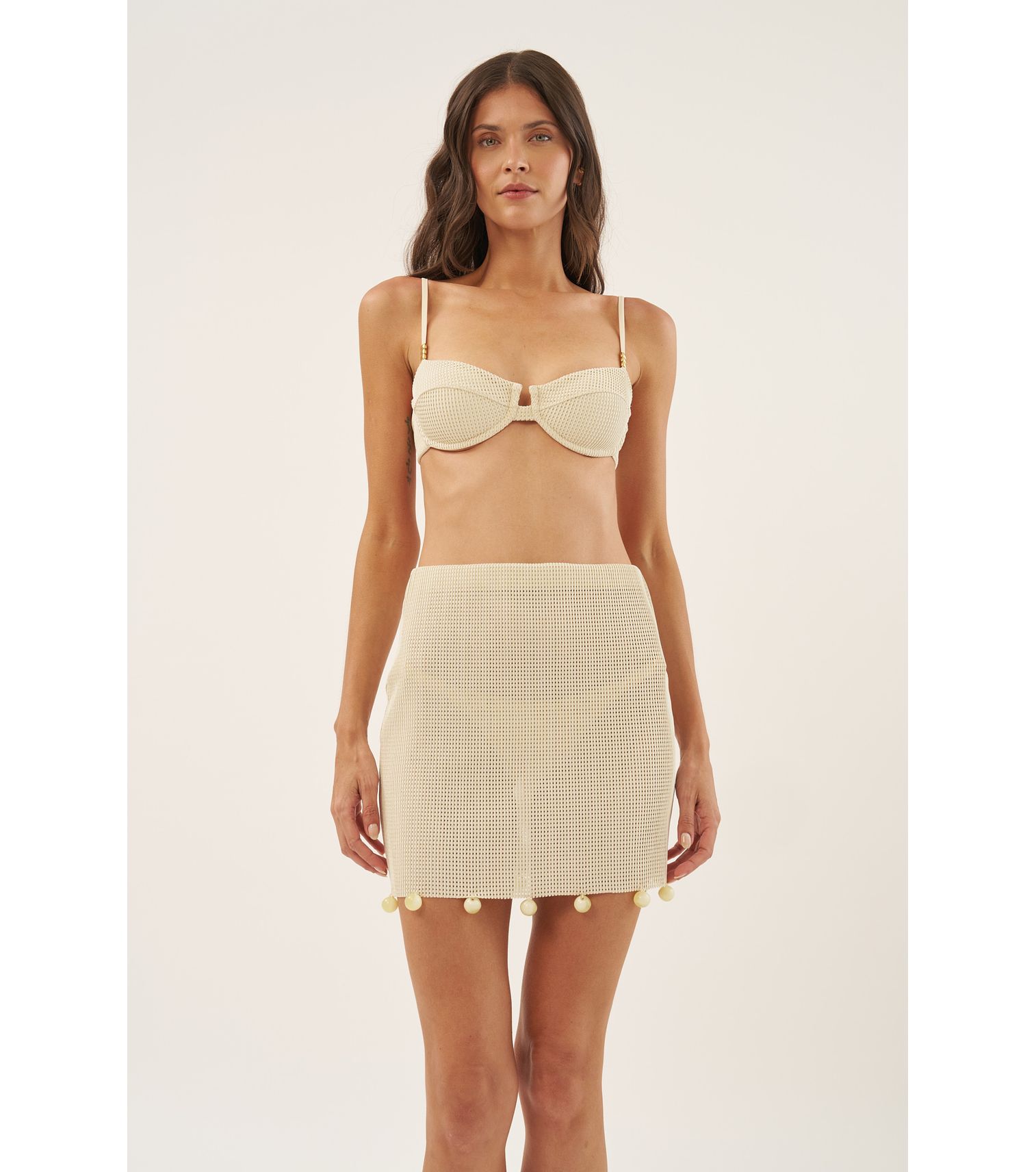 Off white saia bordada franjas P