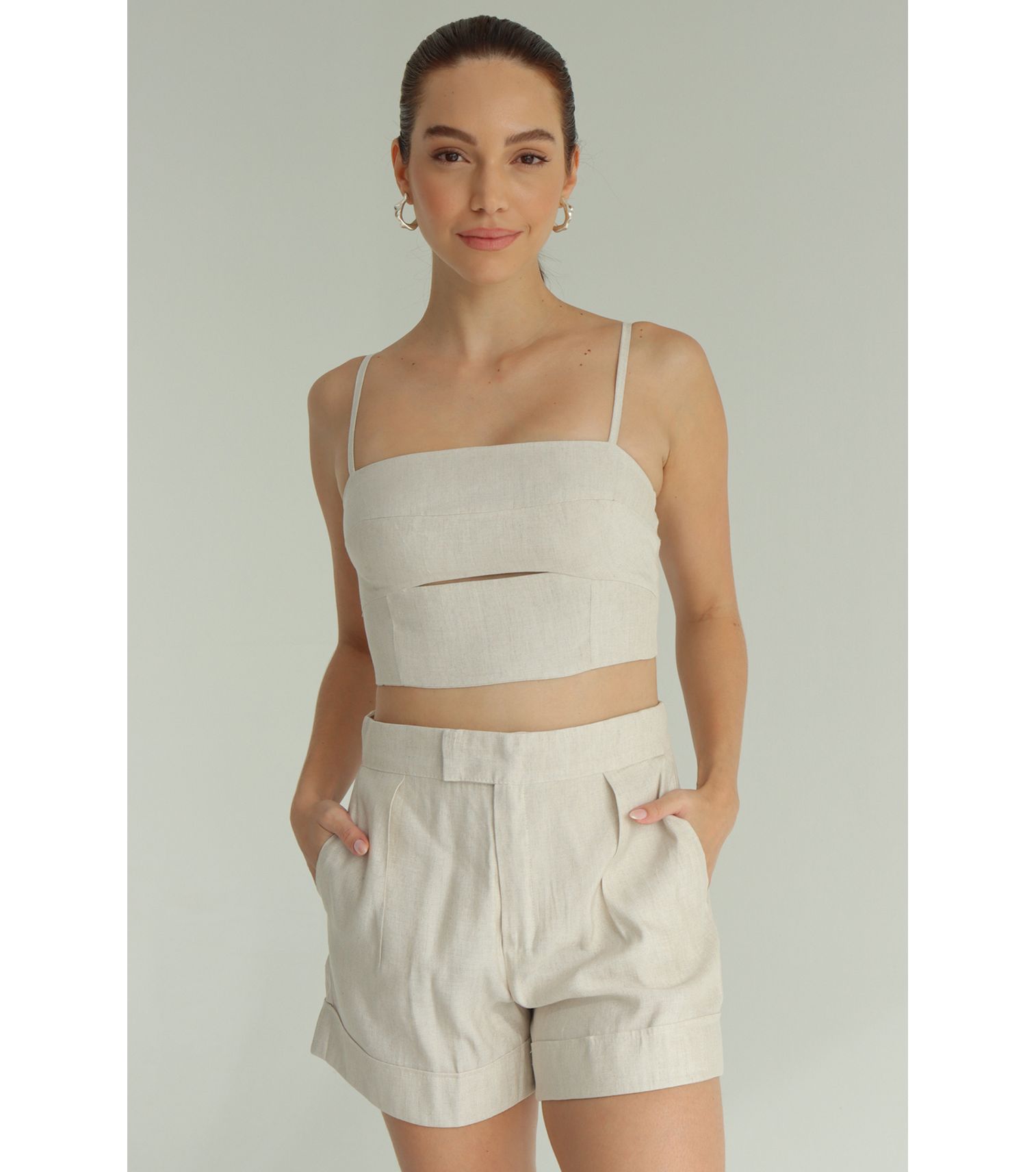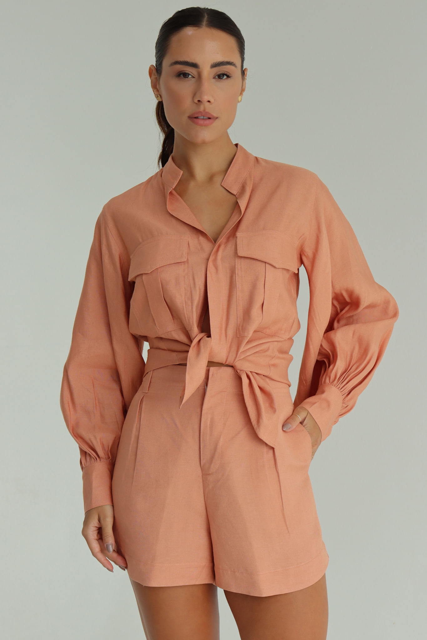 Cobre short pregas com bolsos P
