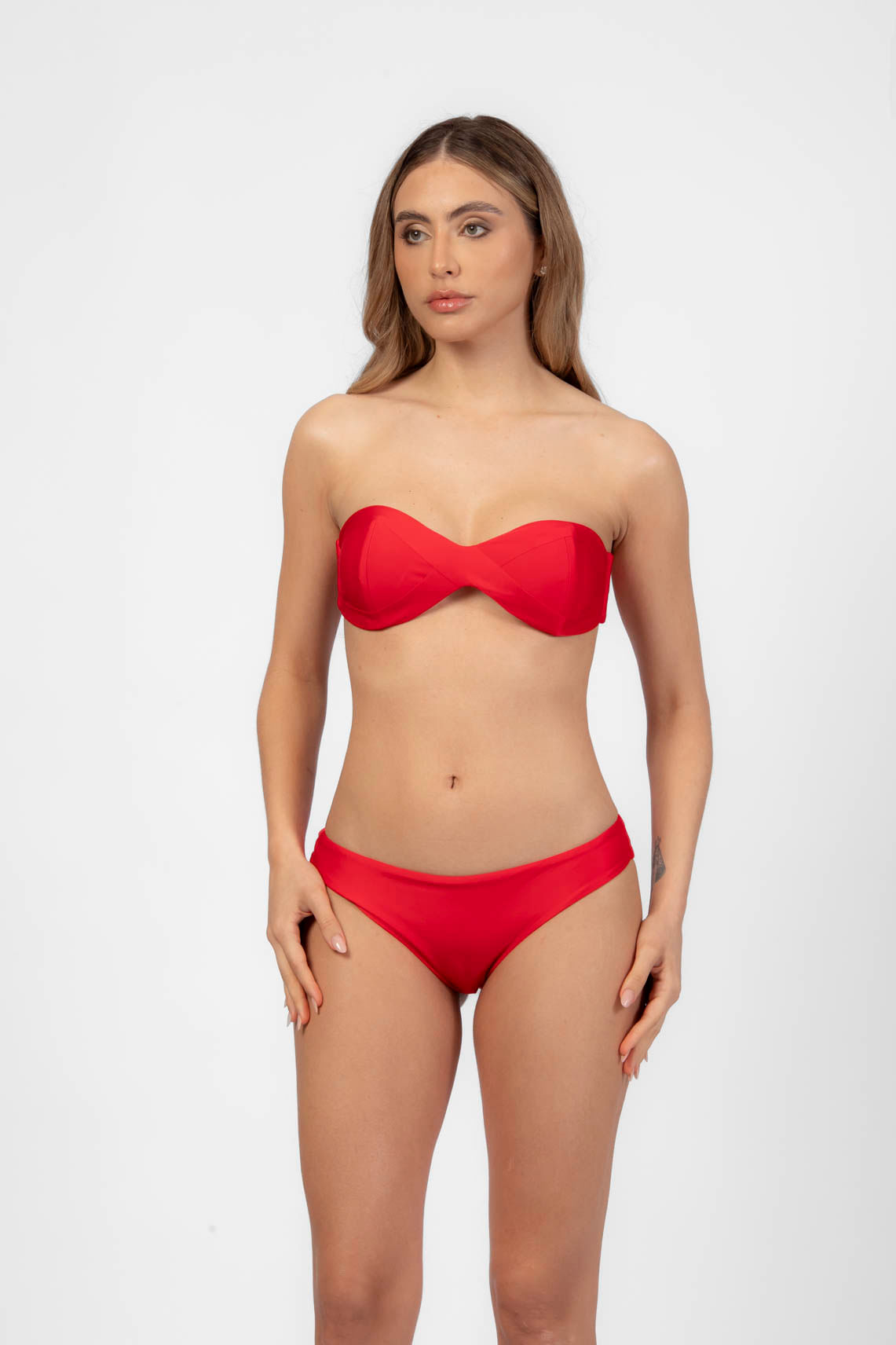 Vermelho reef top tomara que caia com recortes cruzado P