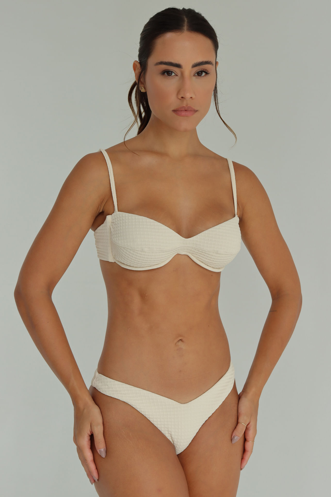 Tweed off white calcinha de biquíni asa delta P