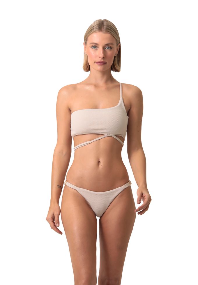 Areia textura top de biquíni um ombro só com viés na cintura