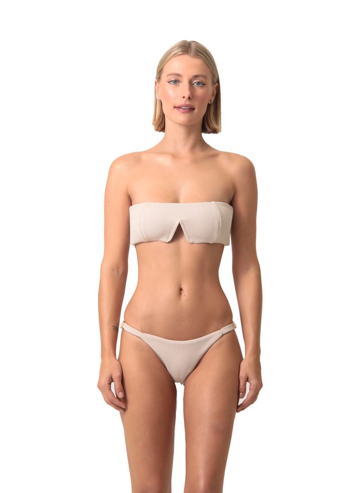 Areia textura calcinha de biquíni asa delta com viés branco