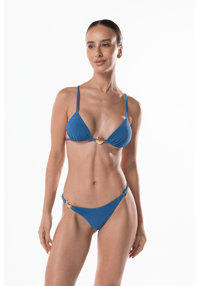 Azul índigo calcinha de biquíni com reguladores laterais e coração