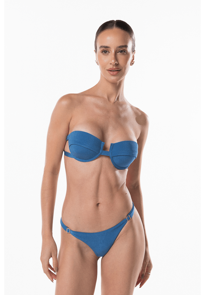 Azul índigo calcinha de biquíni com reguladores nas laterais