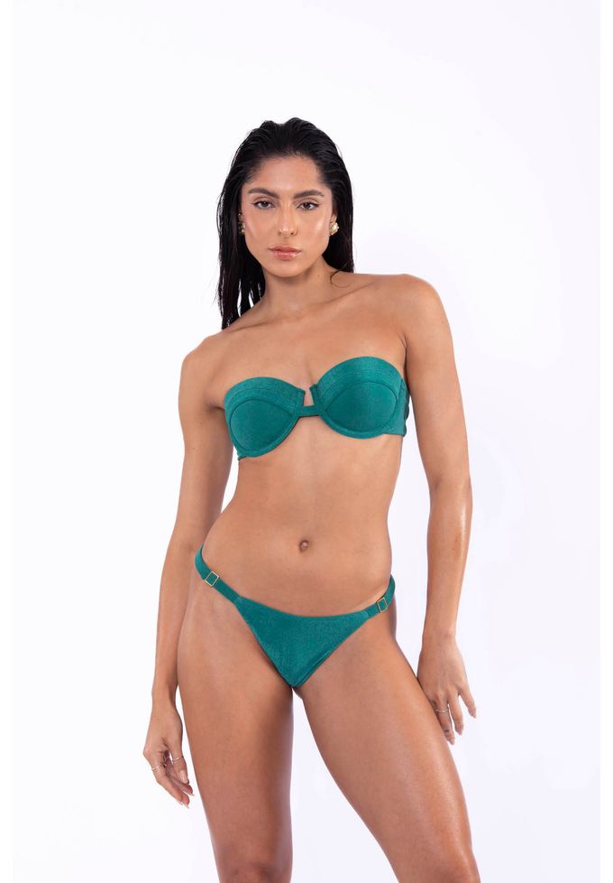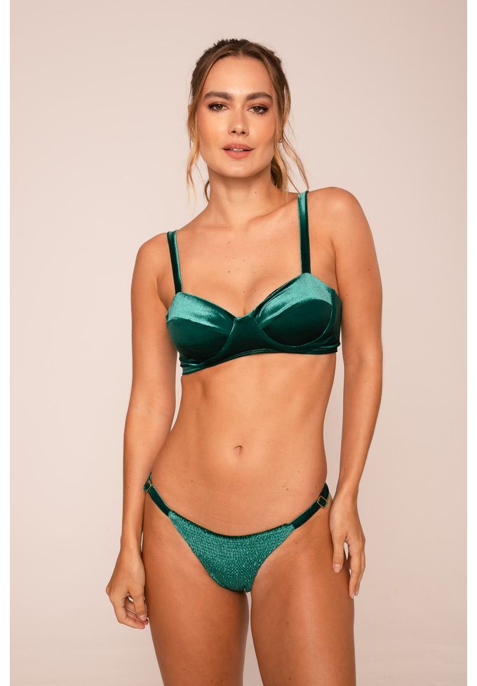 Verde veludo top de biquini estruturado com recorte e aro