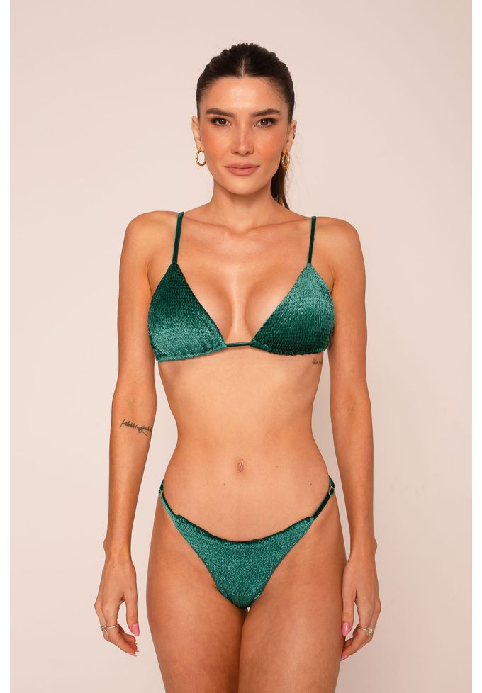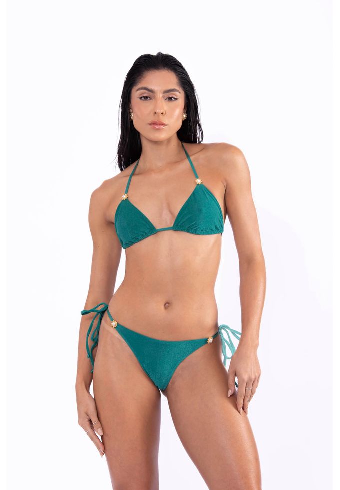 Verde veludo calcinha de biquini com reguladores nas laterais