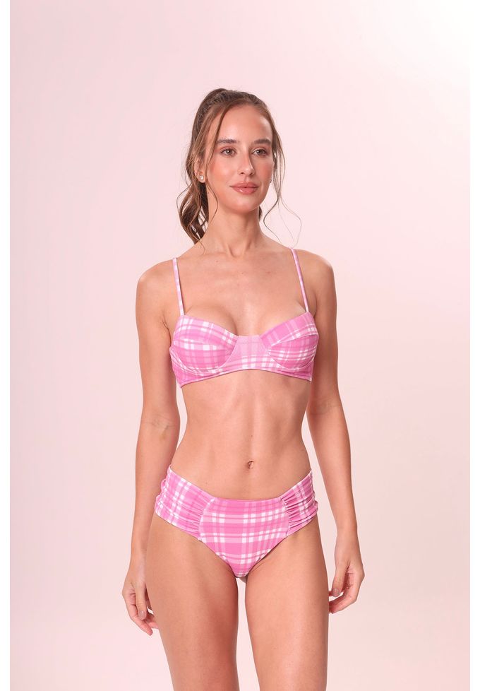 xadrez milkshake - calcinha de biquíni laterais franzidas
