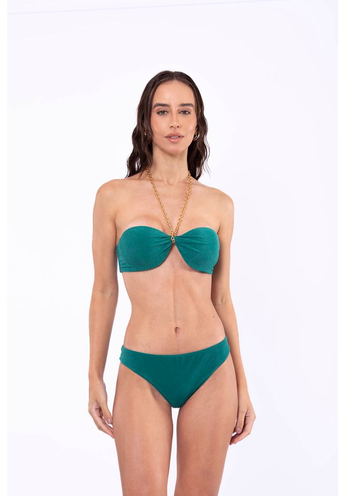 Verde folhagem top de biquíni tomara que caia com corrente