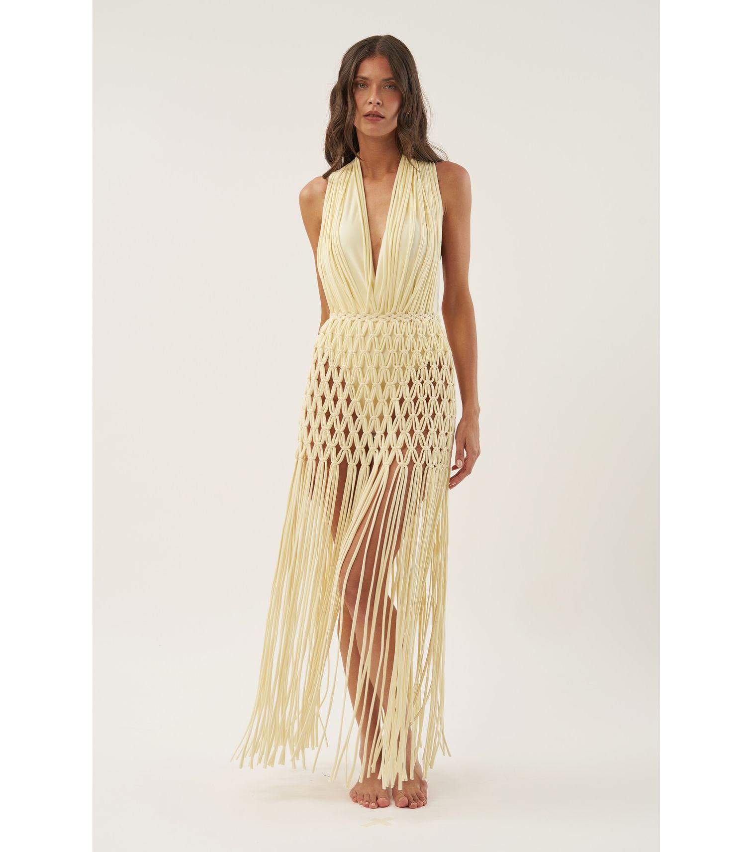 Preto vestido macrame longo frente única P