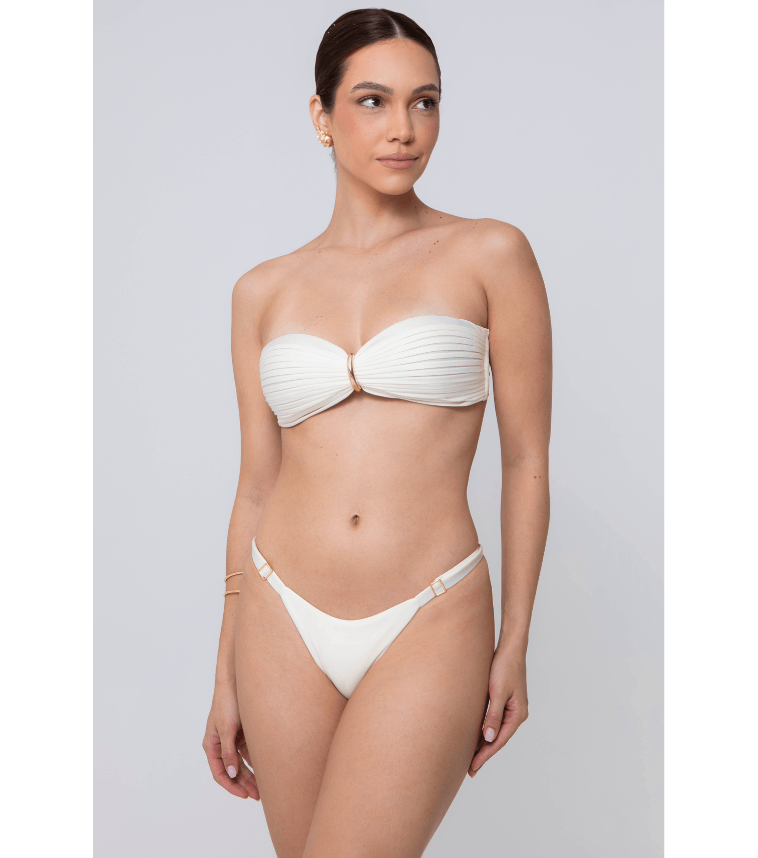 Pérola top de biquíni tomara que caia com aplicação flor P