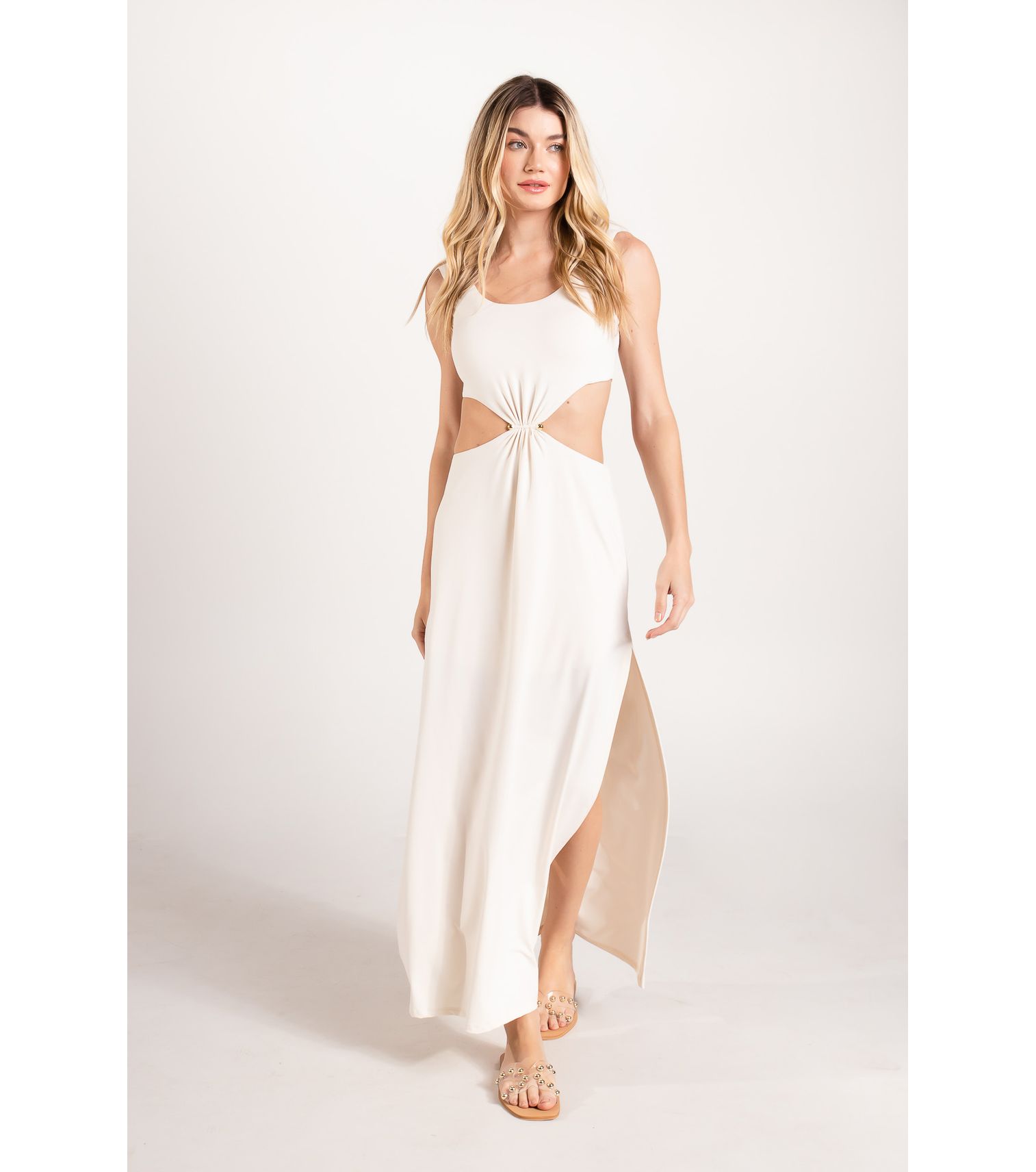 Branco vestido longo camadas M