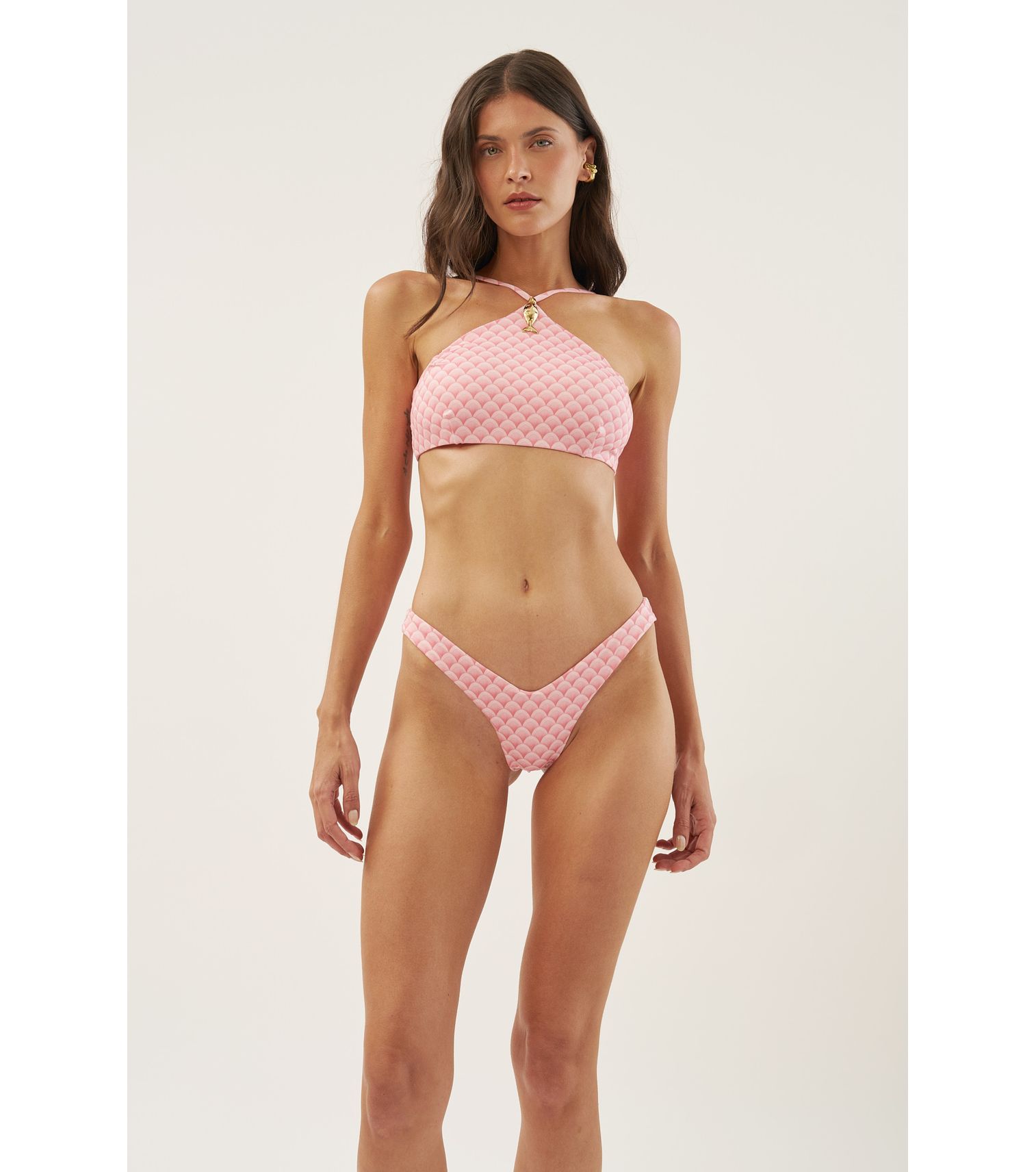 Top cropped frente única com metal, bojo removível, alças reguláveis e abotoador nas costas. cor: pink marmeid tecido: cannes 90% poliamida 10% elastano forro: 88,6% poliamida 11,4% elastano