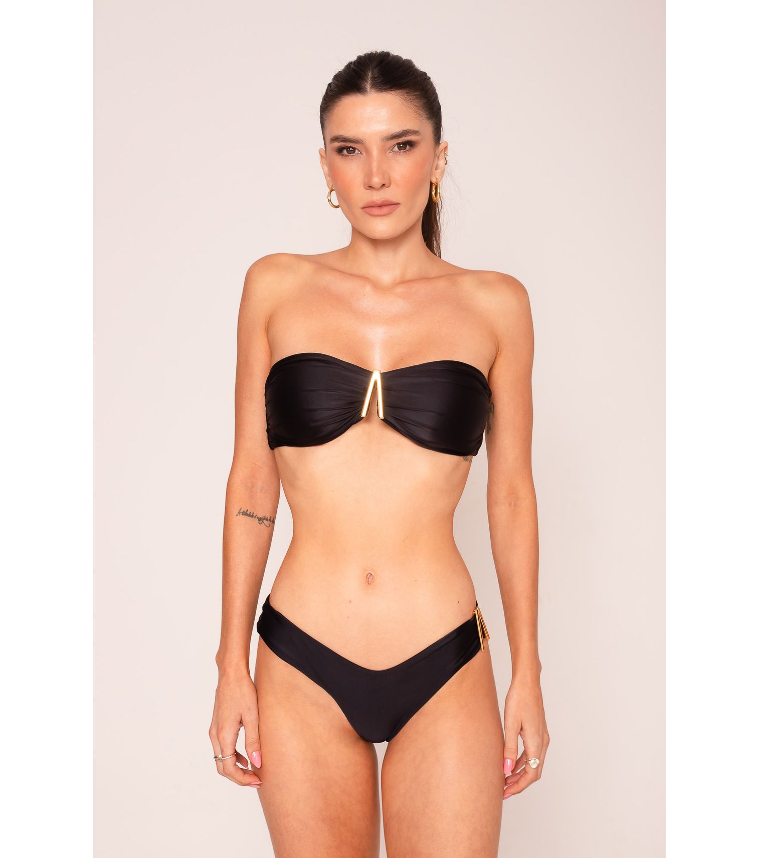 Calcinha de biquíni asa delta com metal v lateral, cor preto
