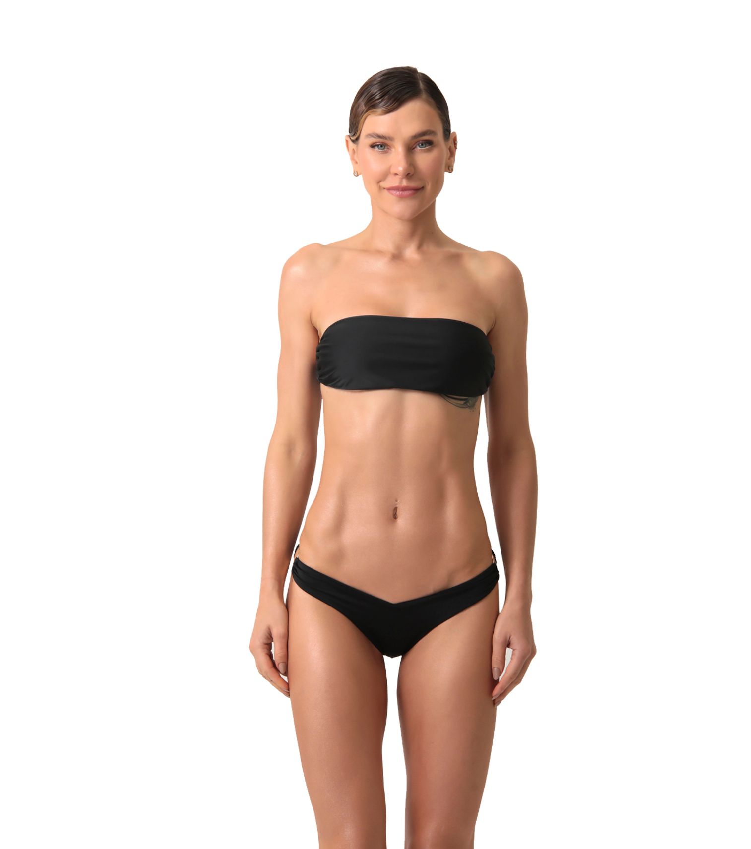Top faixa com argolas laterais, cor preto, com amarração nas costas e bojo removível;