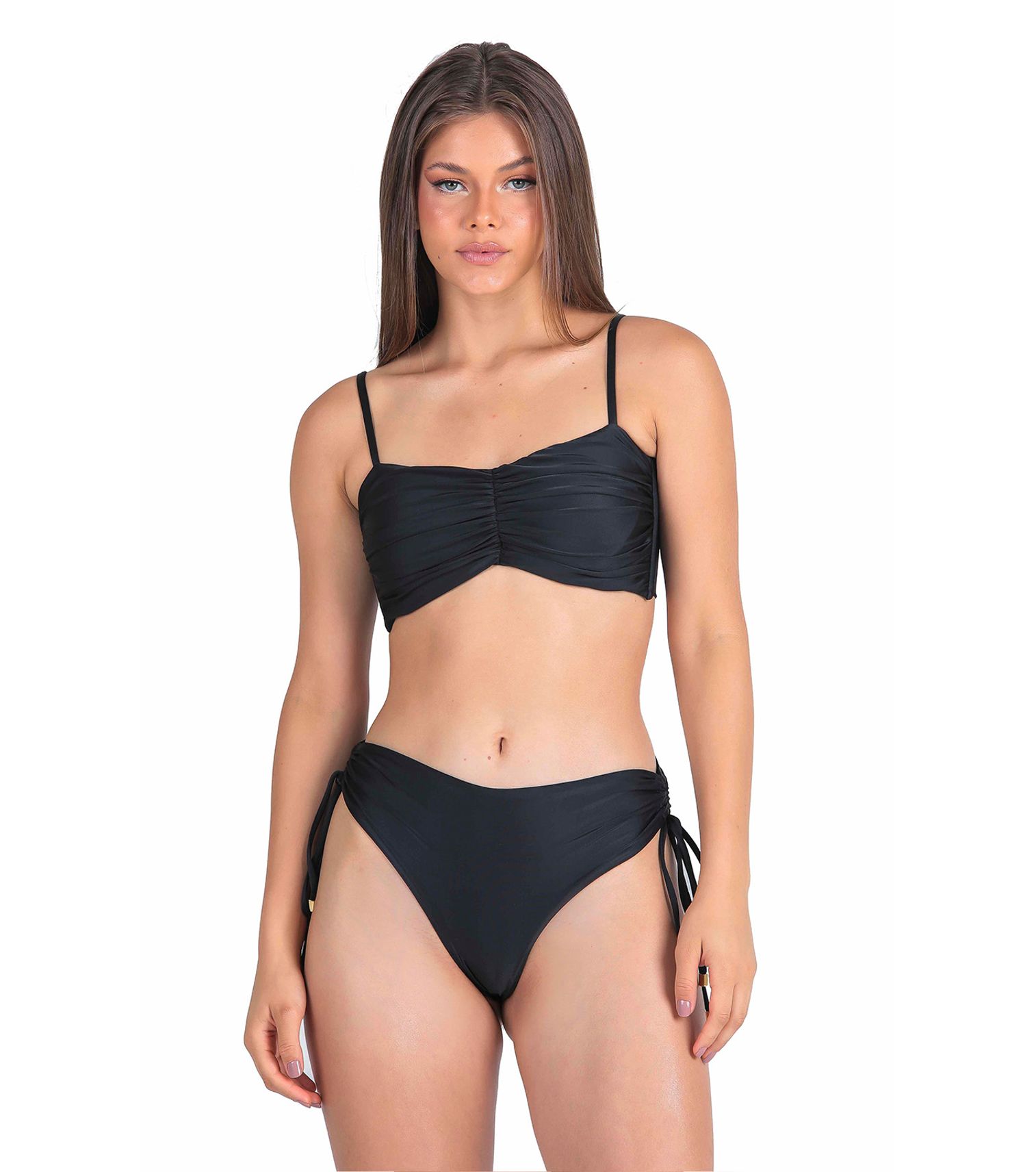 Top de biquini reto drapeado com amarração nas costas e bojo removível.